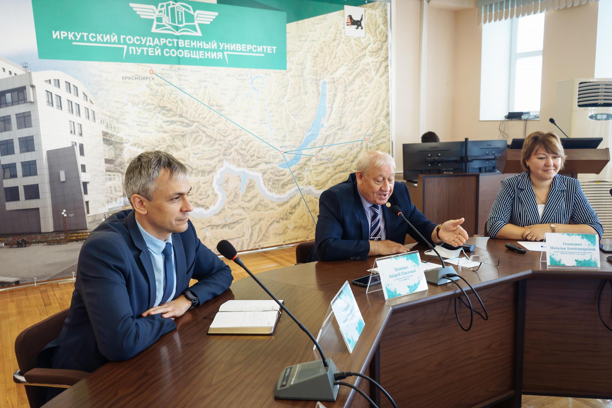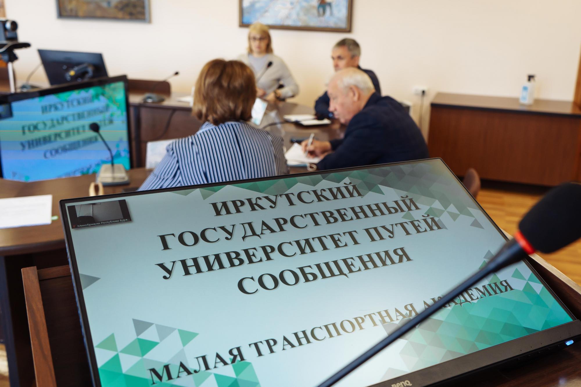 Во встрече от Иркутского государственного университета путей сообщения приняли участие и.о. ректора Андрей Хоменко, первый проректор Юрий Трофимов, директор института дополнительного образования Наталья Олинович, начальник Малой транспортной академии Наталья Исаева, а от министерства образования и науки Республики Бурятия – первый заместитель министра Наталья Сандакова.