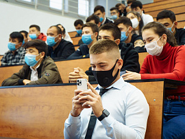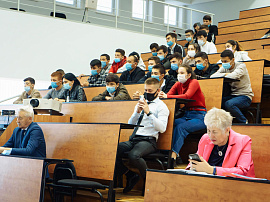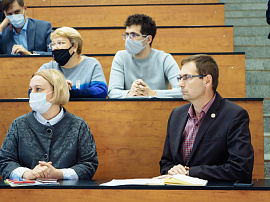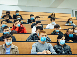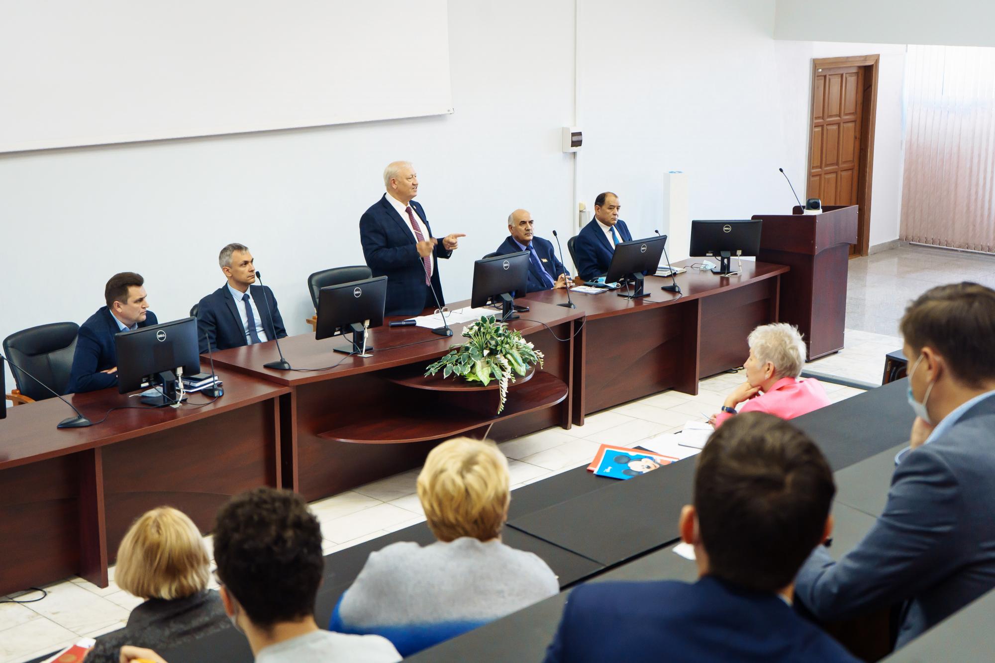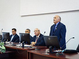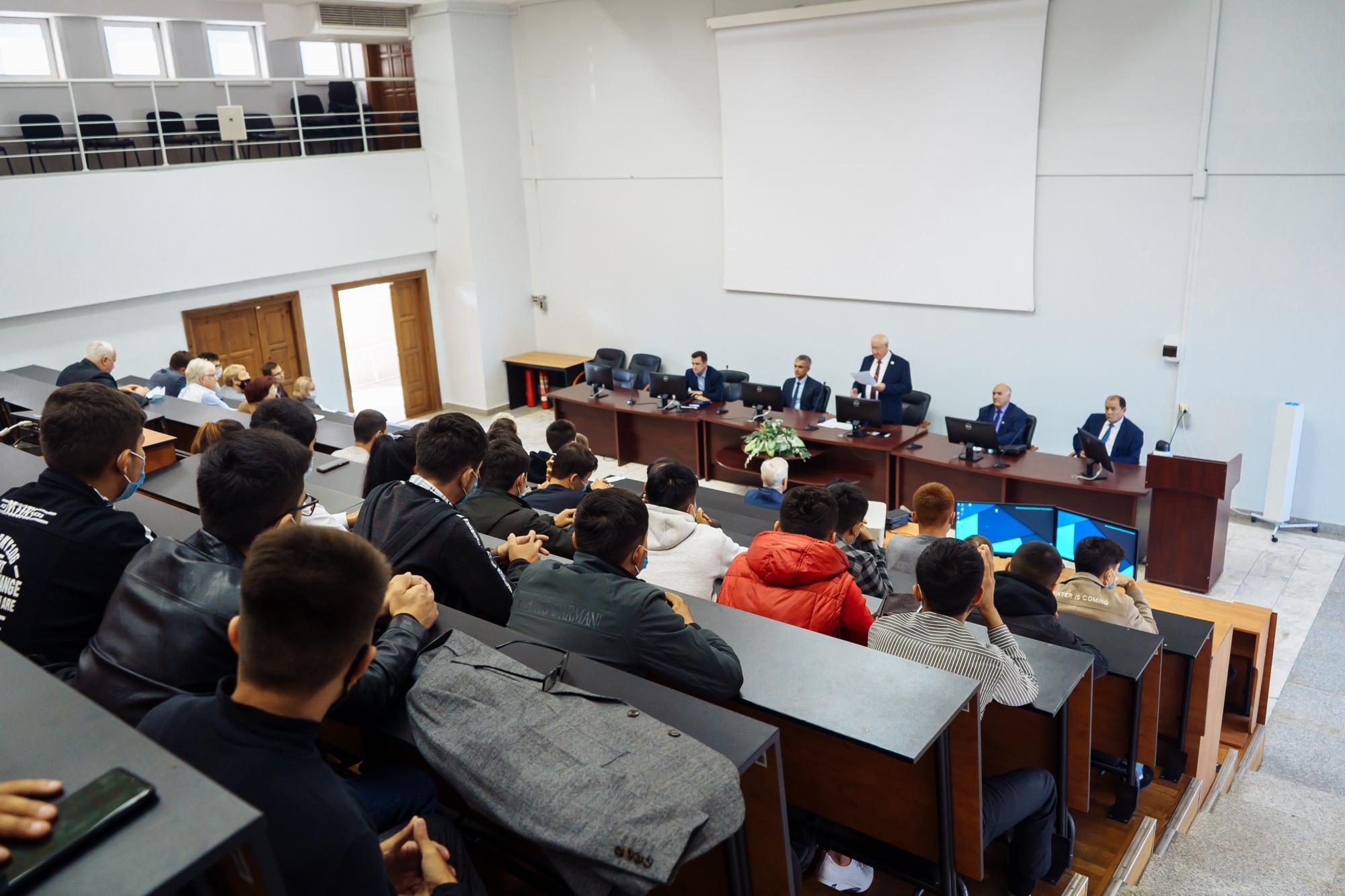 И.о. ректора университета Андрей Хоменко представил студентам первого курса деканов всех пяти факультетов, директора студгородка. Молодым людям рассказали также о внеучебной деятельности - творческих, спортивных направлениях, а также работе Медиацентра.