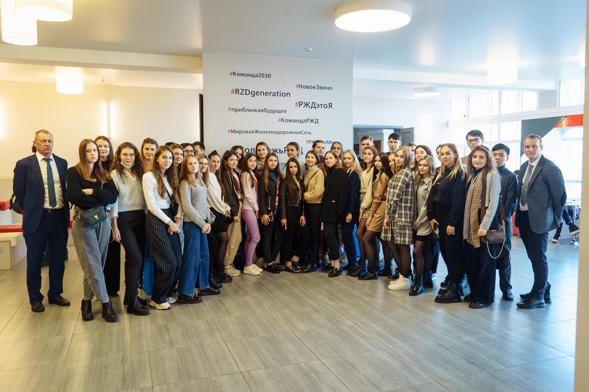 В делегации – 18 студентов четвертого курса РУТ (МИИТ). Все они обучаются по программе 50/50. Напомним, что Иркутский государственный университет путей сообщения в 2019 году стал вторым университетом в России, с которым ОАО «РЖД» заключило соглашение о подготовке специалистов в области организации, оплаты и мотивации труда на условиях софинансирования половины стоимости обучения и последующего трудоустройства выпускников в структуры Компании.