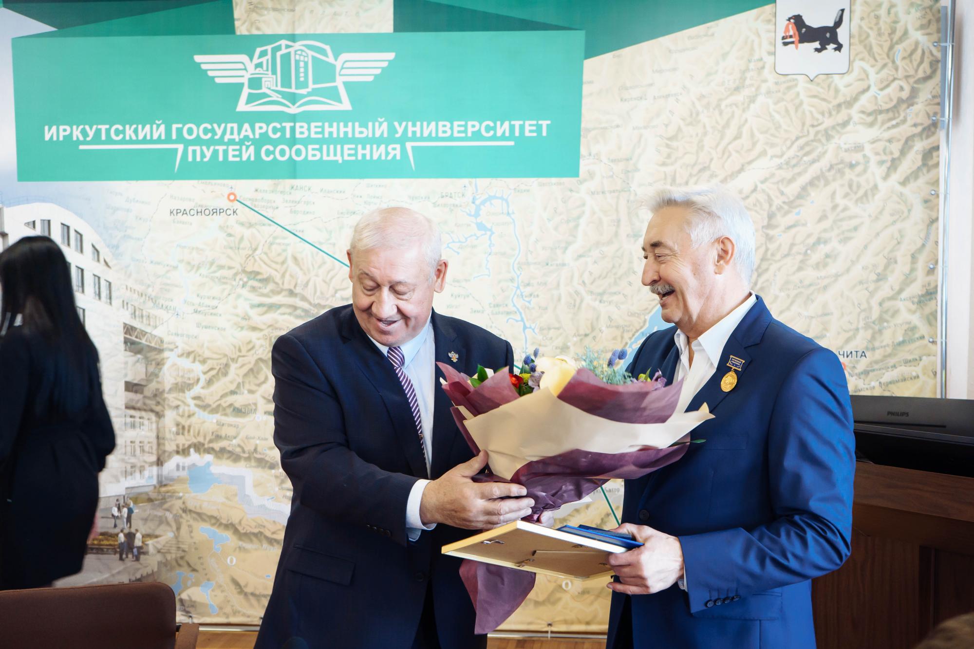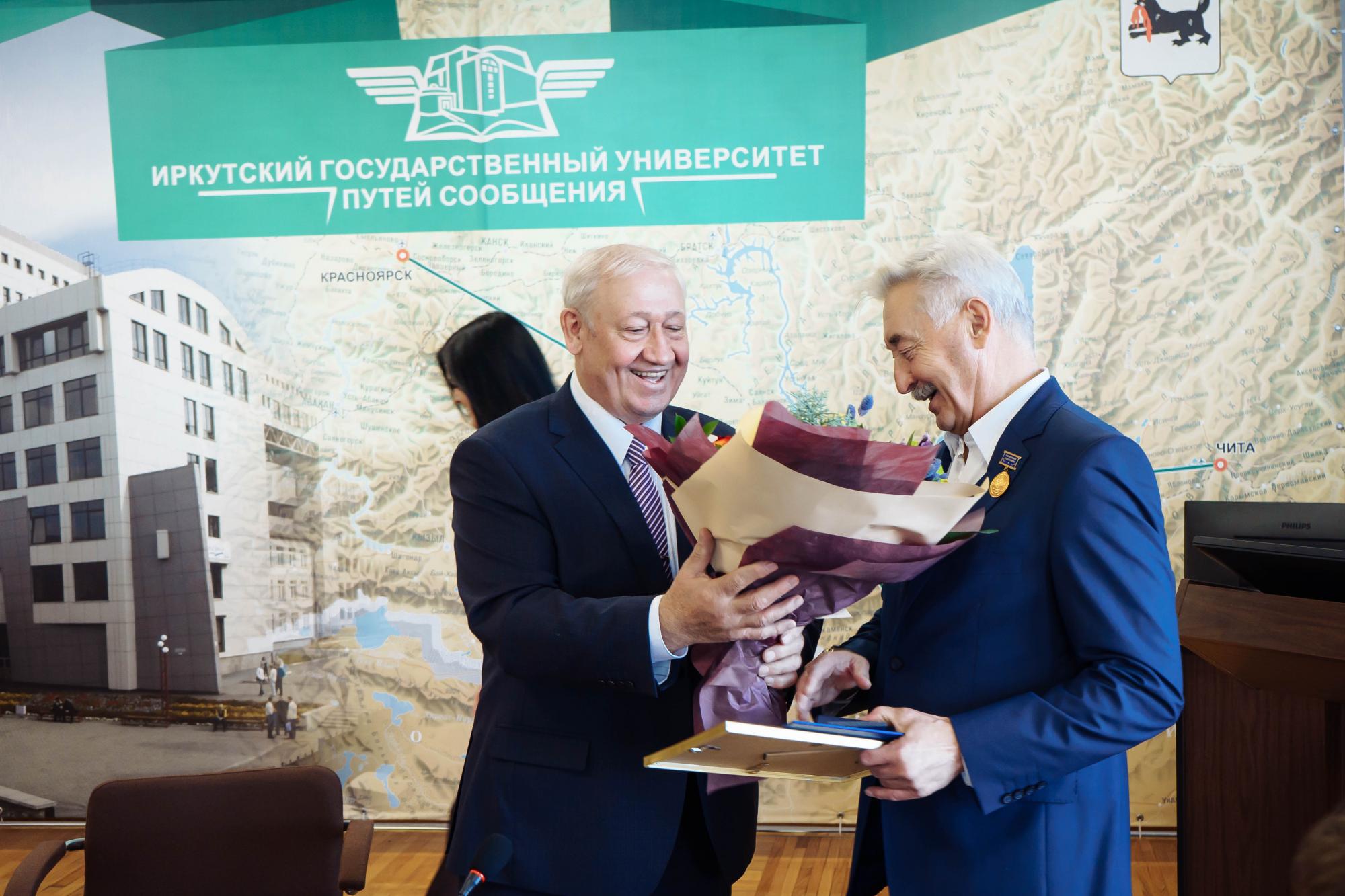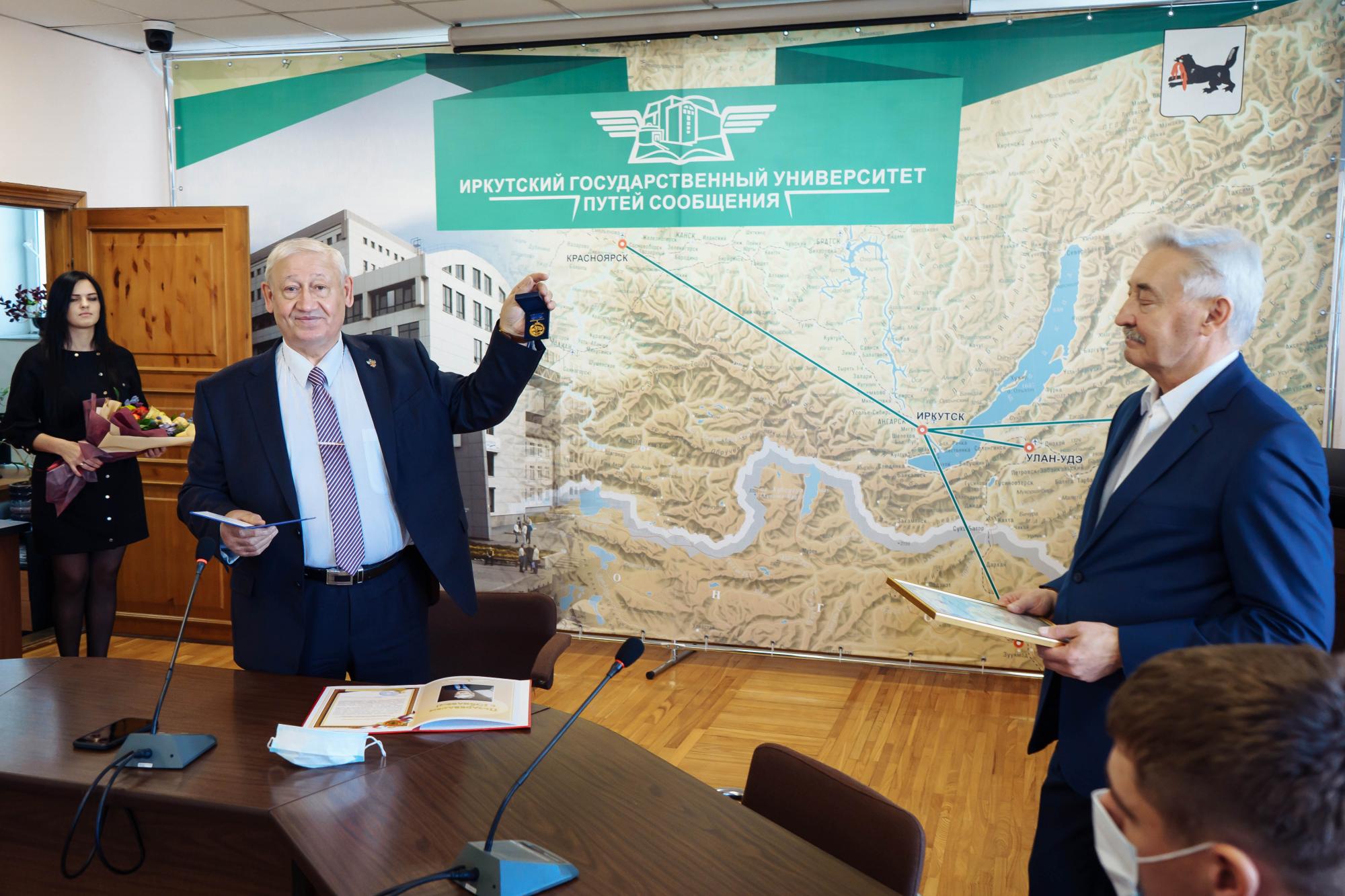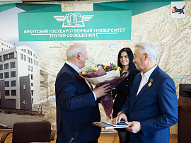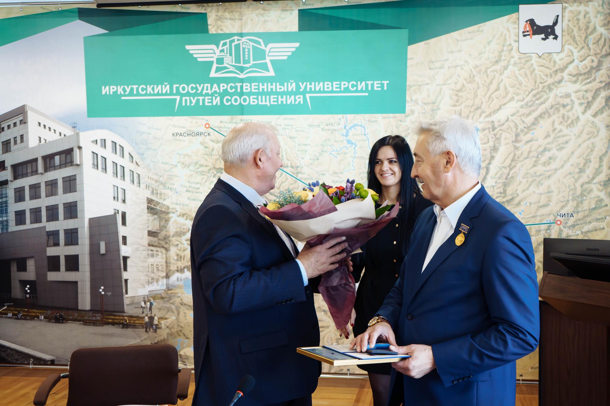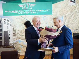 Награждение состоялось на собрании коллектива университета в честь 65-летнего юбилея Виктора Викторовича Михайлова. И.о. ректора ИрГУПС Андрей Хоменко вручил юбиляру знак «Почетный работник ИрГУПС» и поздравил с праздником!