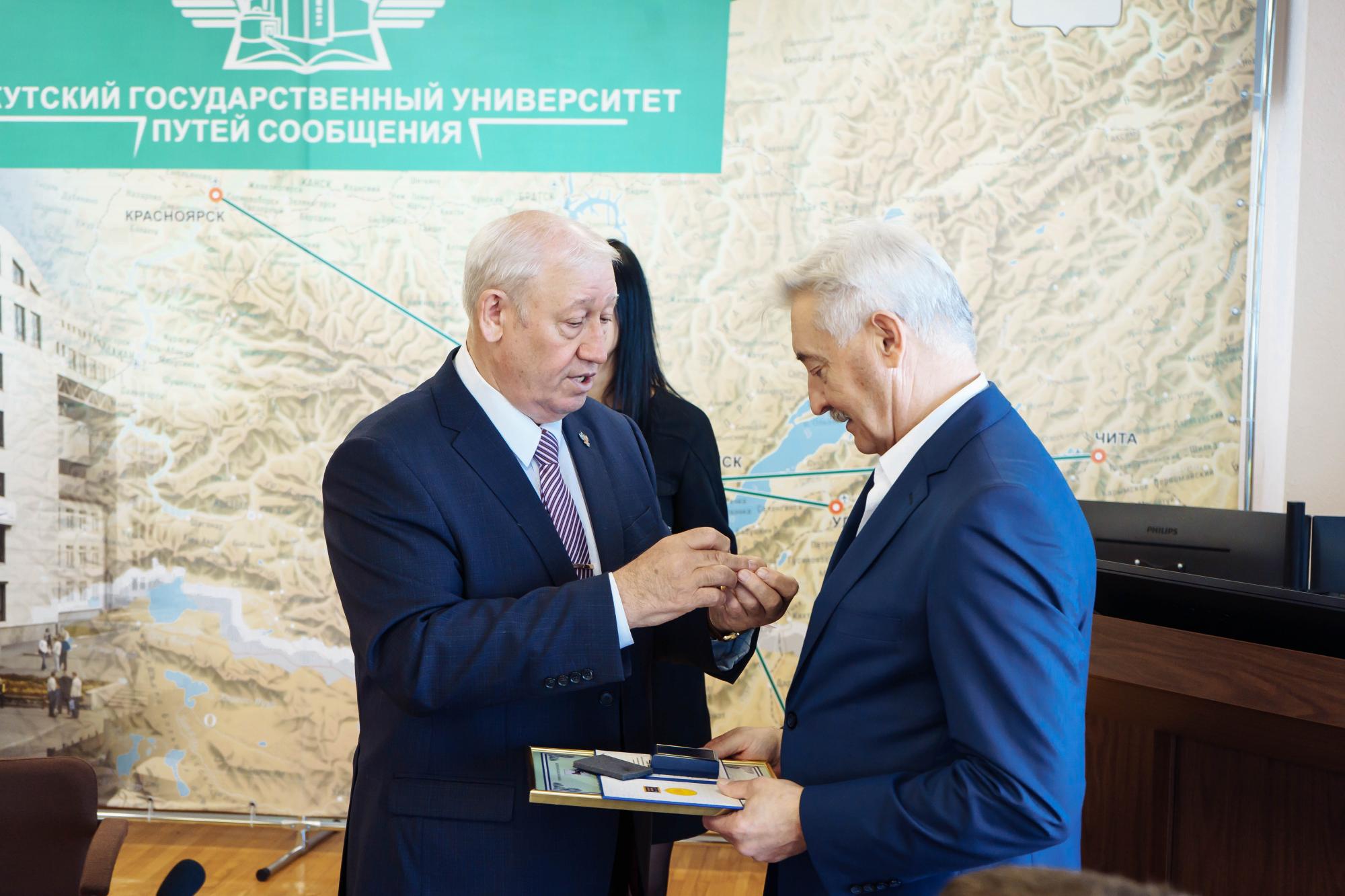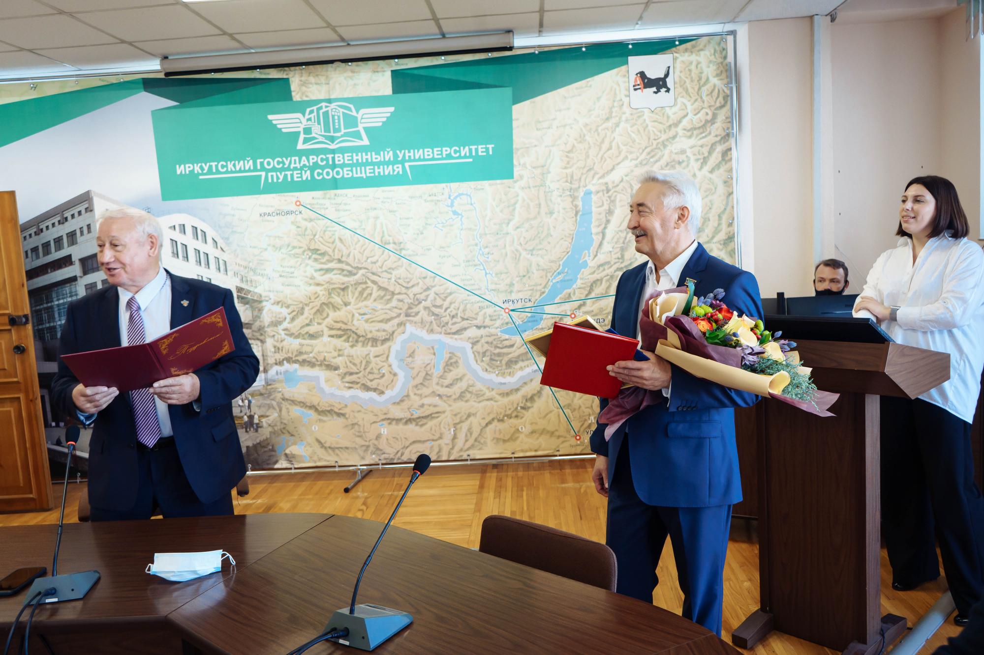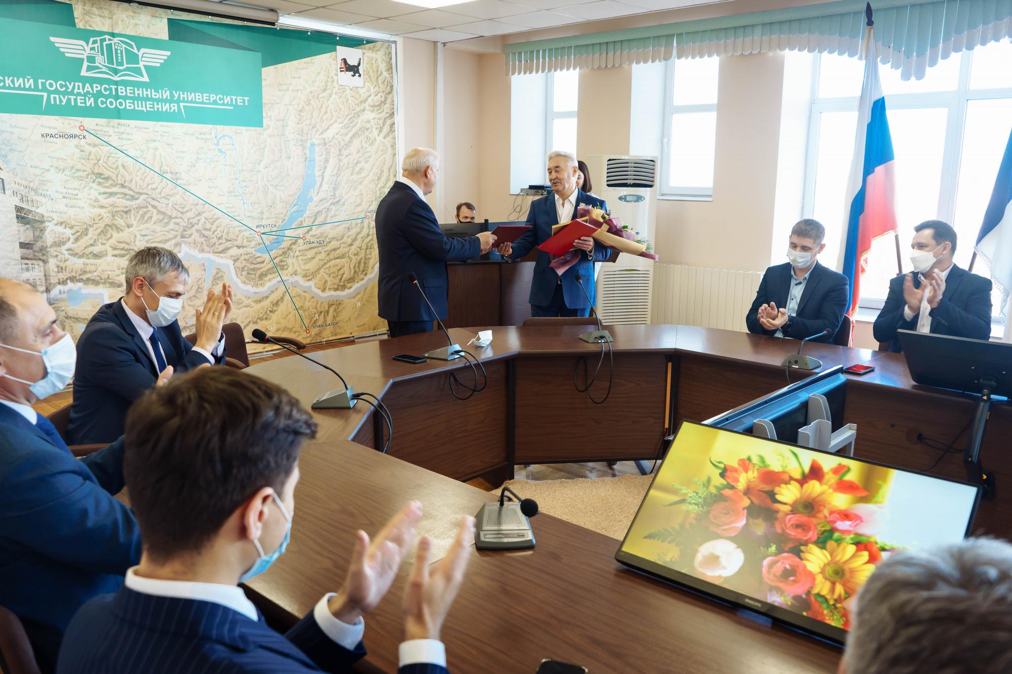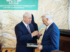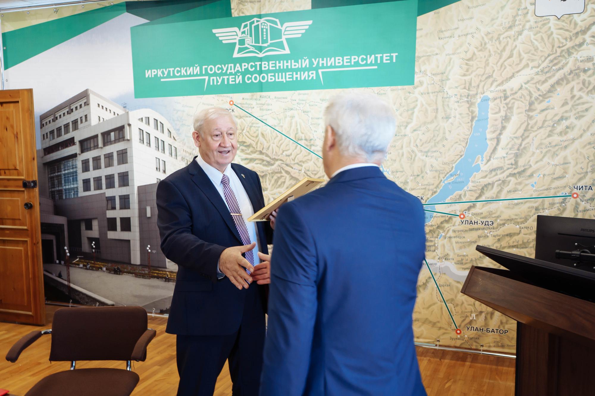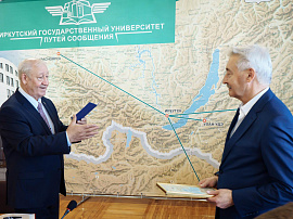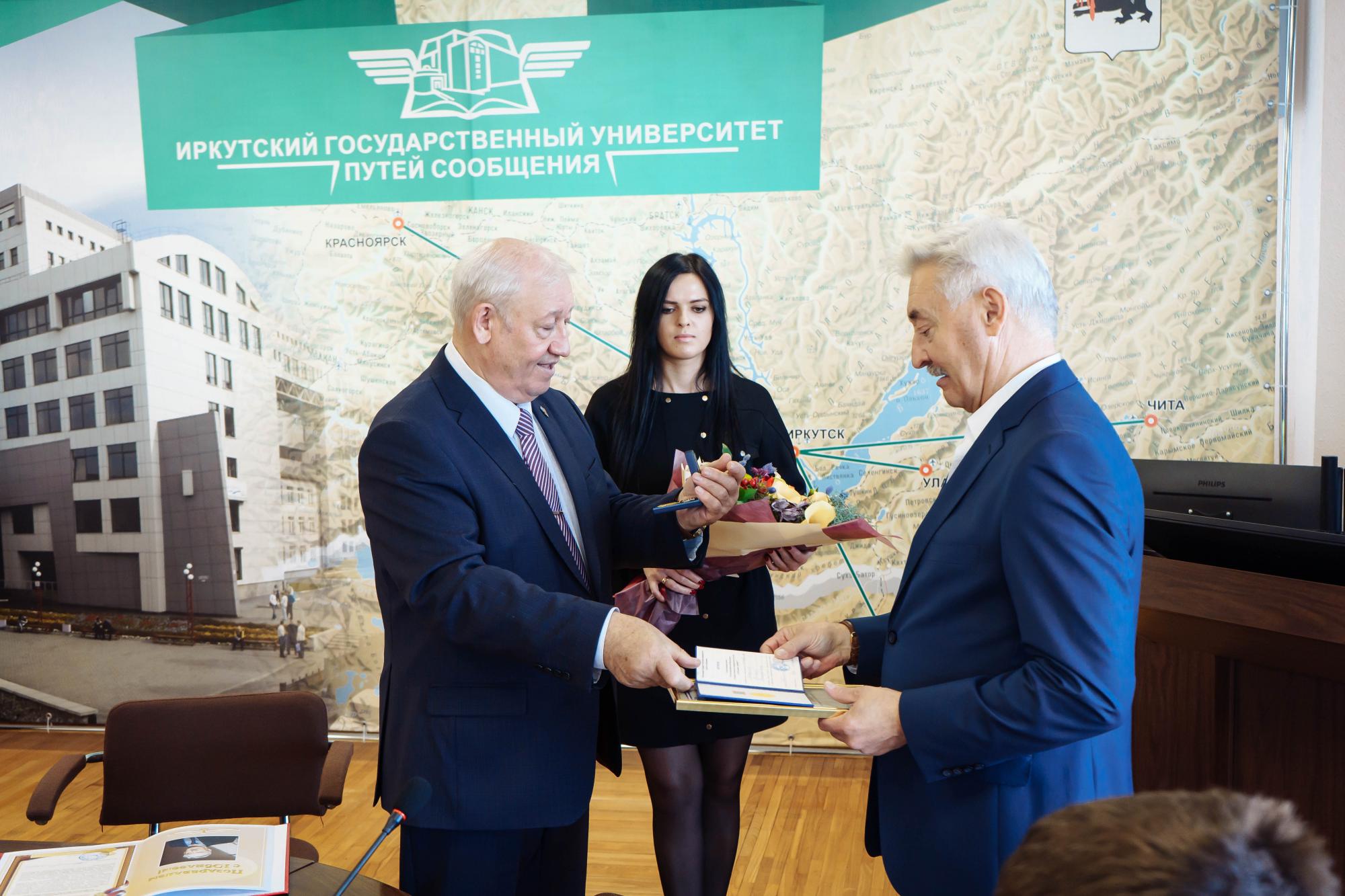 Награждение состоялось на собрании коллектива университета в честь 65-летнего юбилея Виктора Викторовича Михайлова. И.о. ректора ИрГУПС Андрей Хоменко вручил юбиляру знак «Почетный работник ИрГУПС» и поздравил с праздником!