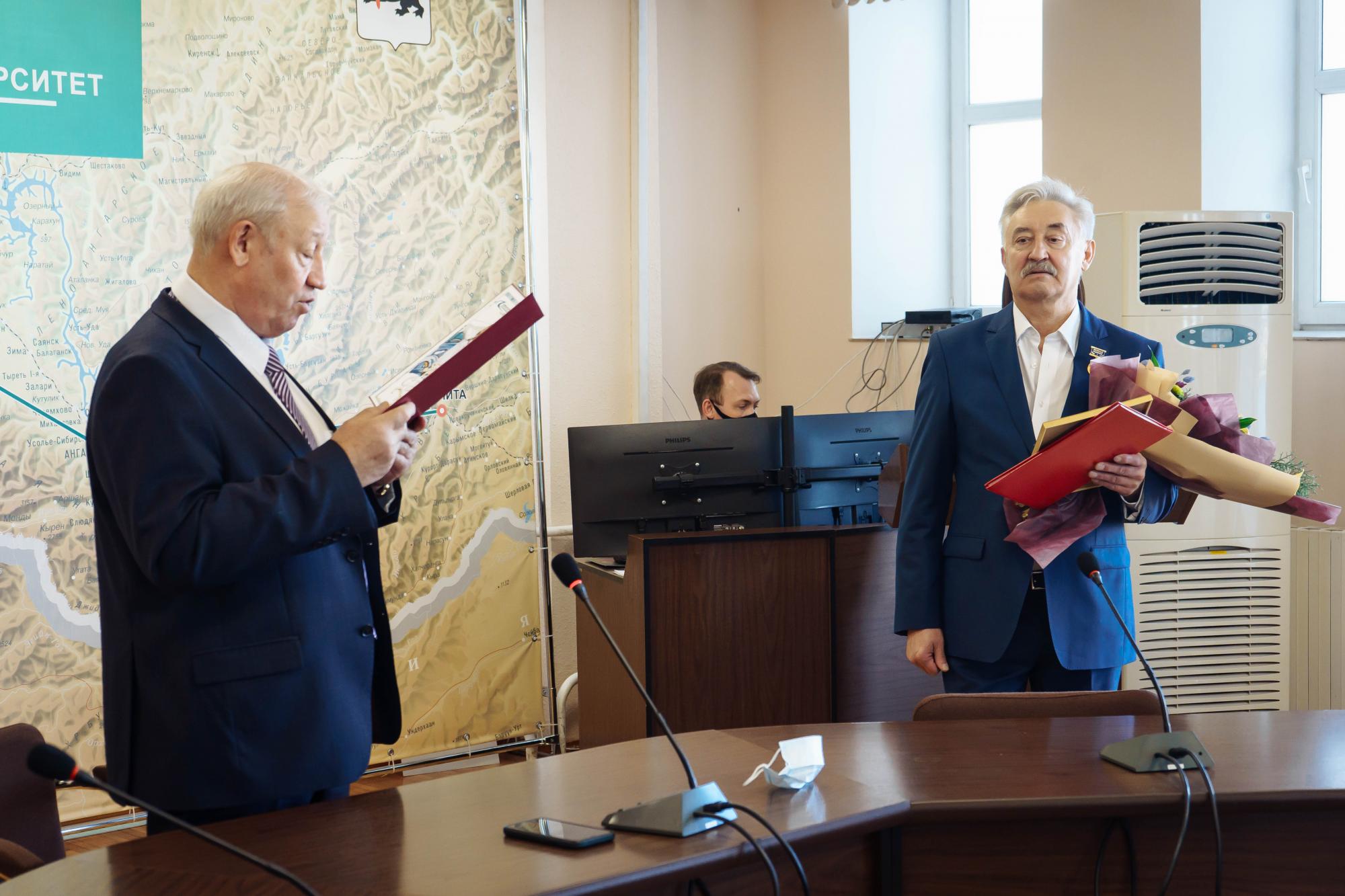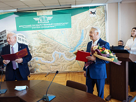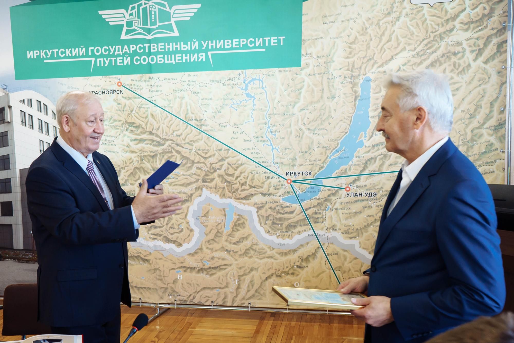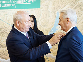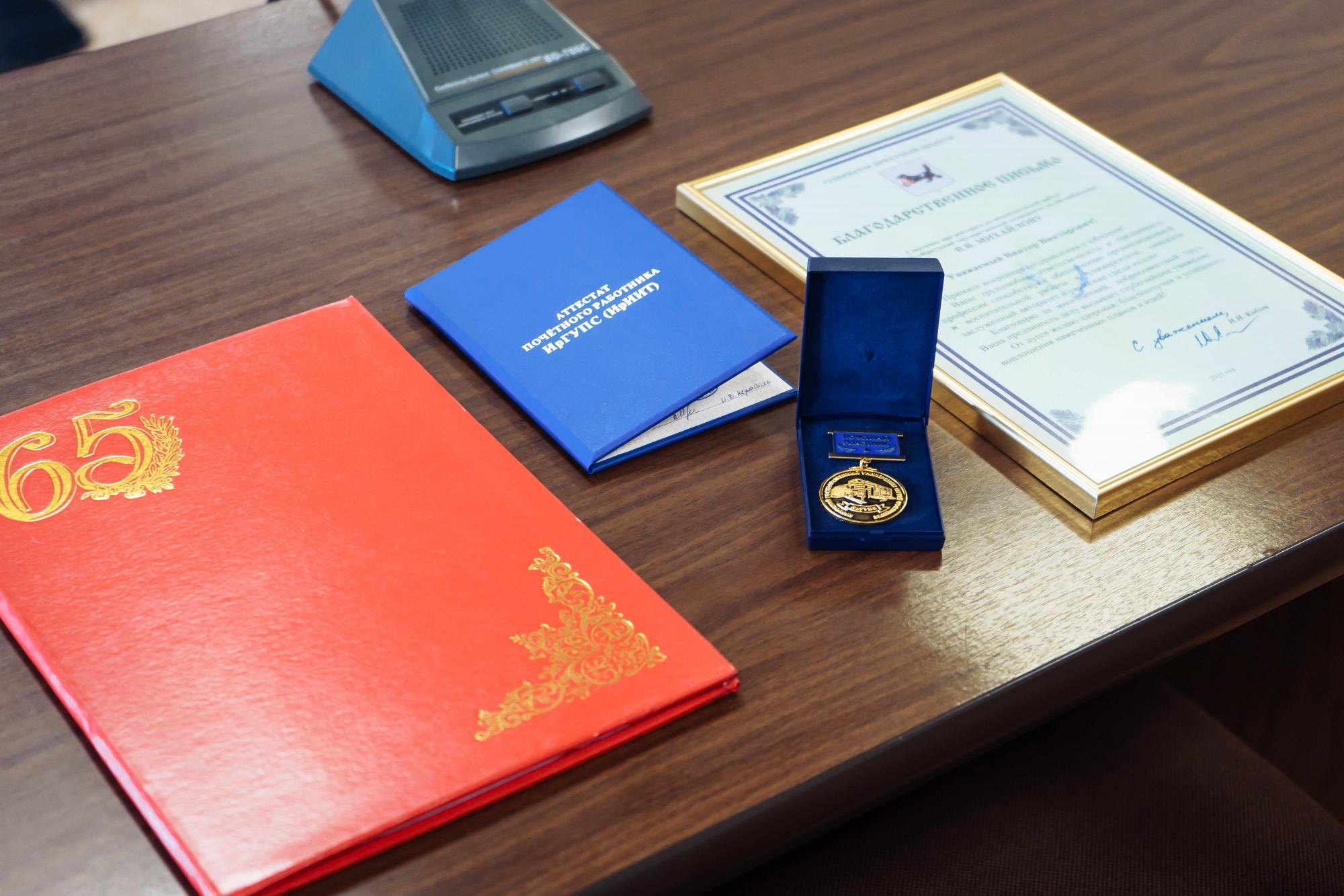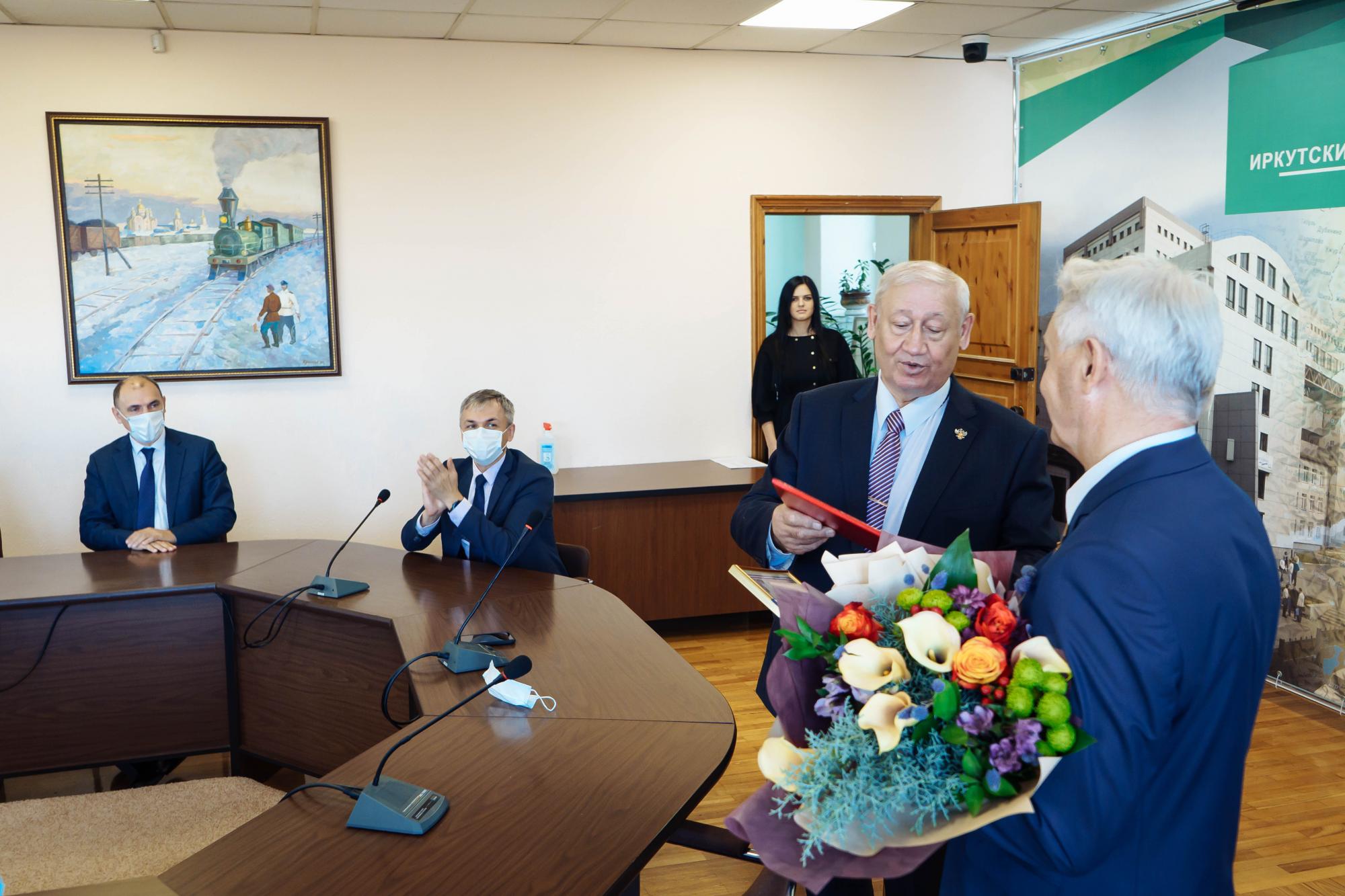 Награждение состоялось на собрании коллектива университета в честь 65-летнего юбилея Виктора Викторовича Михайлова. И.о. ректора ИрГУПС Андрей Хоменко вручил юбиляру знак «Почетный работник ИрГУПС» и поздравил с праздником!