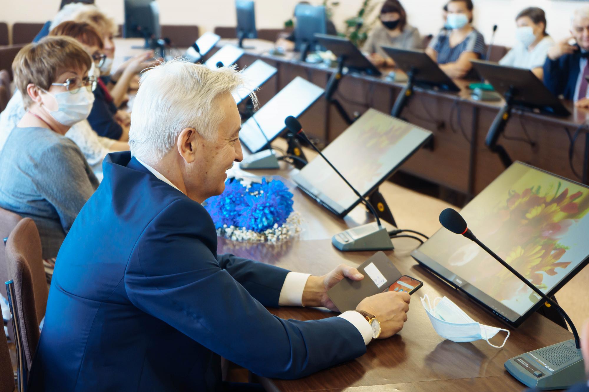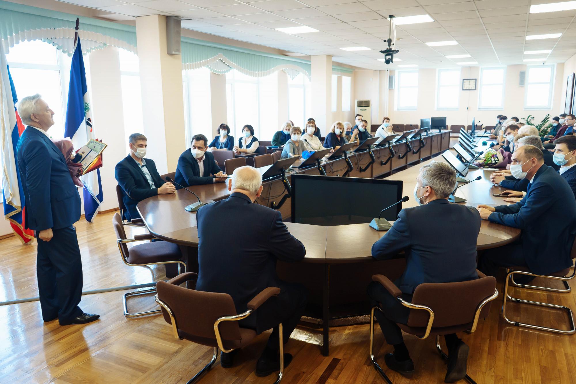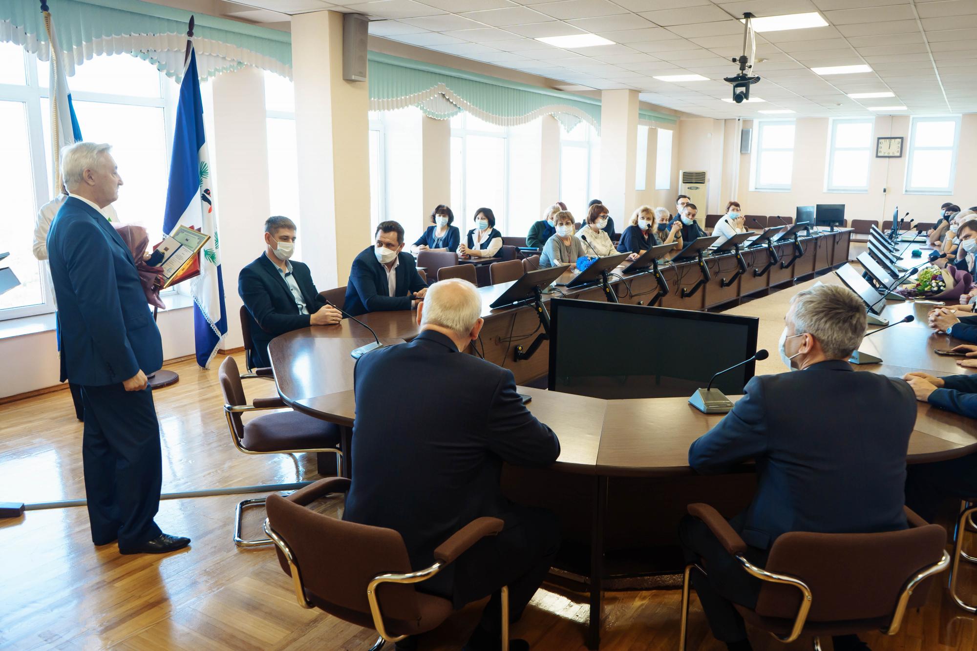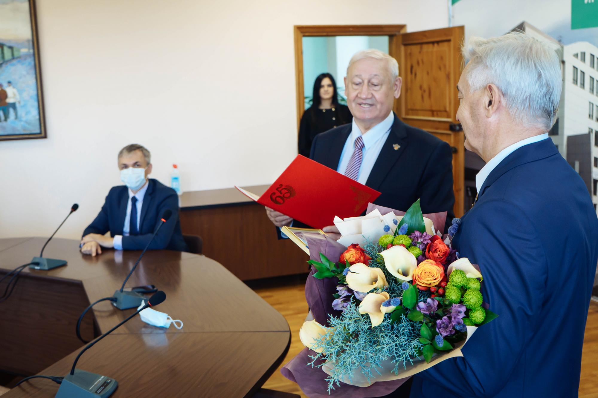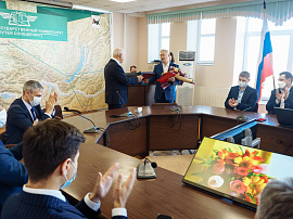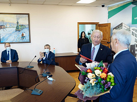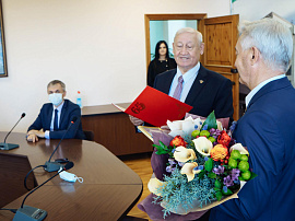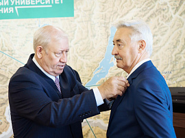 Награждение состоялось на собрании коллектива университета в честь 65-летнего юбилея Виктора Викторовича Михайлова. И.о. ректора ИрГУПС Андрей Хоменко вручил юбиляру знак «Почетный работник ИрГУПС» и поздравил с праздником!