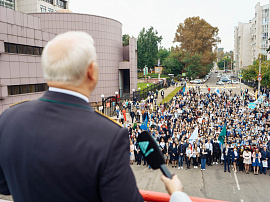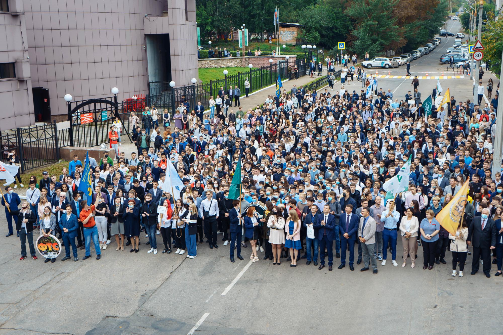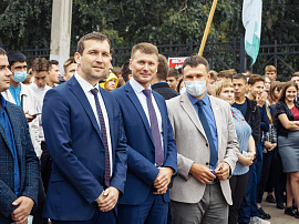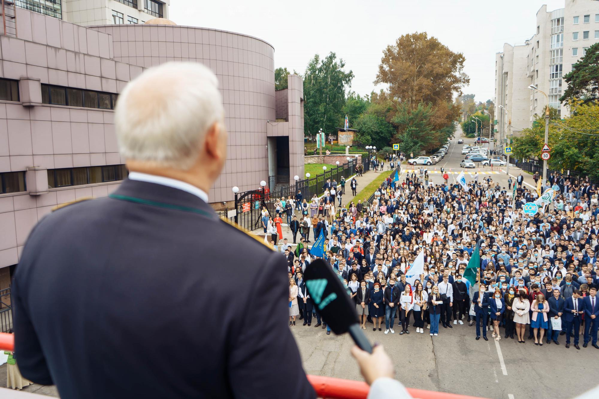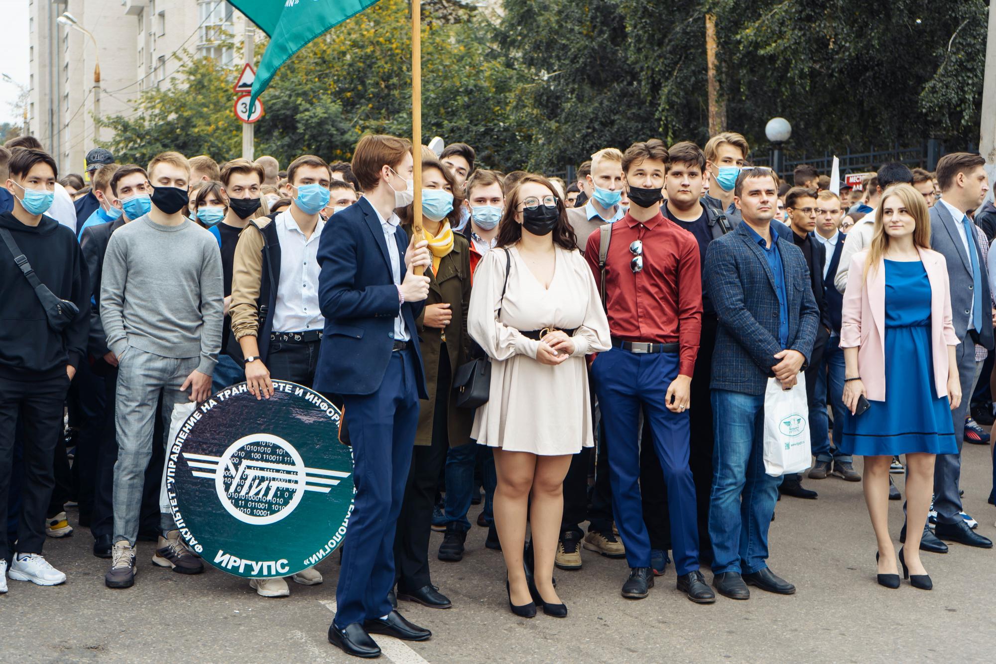 Торжественный митинг 1 сентября по традиции прошел на улице возле главного корпуса ИрГУПС. С приветственными словами и поздравлениями к собравшимся на площади первокурсникам, их родителям, педагогическому коллективу вуза обратились и.о. ректора ИрГУПС Андрей Хоменко, депутат Государственной Думы ФС РФ Сергей Тен, начальник ВСЖД Вадим Владимиров, мэр г. Иркутска Руслан Болотов, заместитель председателя Законодательного собрания Иркутской области Ольга Носенко, заместитель министра образования Иркутской области Дмитрий Скрипучий, председатель Дорпофжел на ВСЖД Александр Старцев.