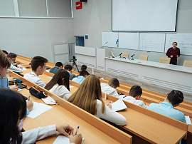 Участниками стали 350 учащихся 10-11 классов из школ № 67, № 63, № 7 г. Иркутска, а также иркутского лицея № 1 и школы № 2 Хомутово. В течение первого семестра слушателям курса дадут углубленные знания по математике и физике, это поможет подтянуть уровень школьных знаний и подготовиться к сдаче ЕГЭ. Сегодня первое занятие для детей провел доцент кафедры "Математика" Григорий Давыдович Гефан.