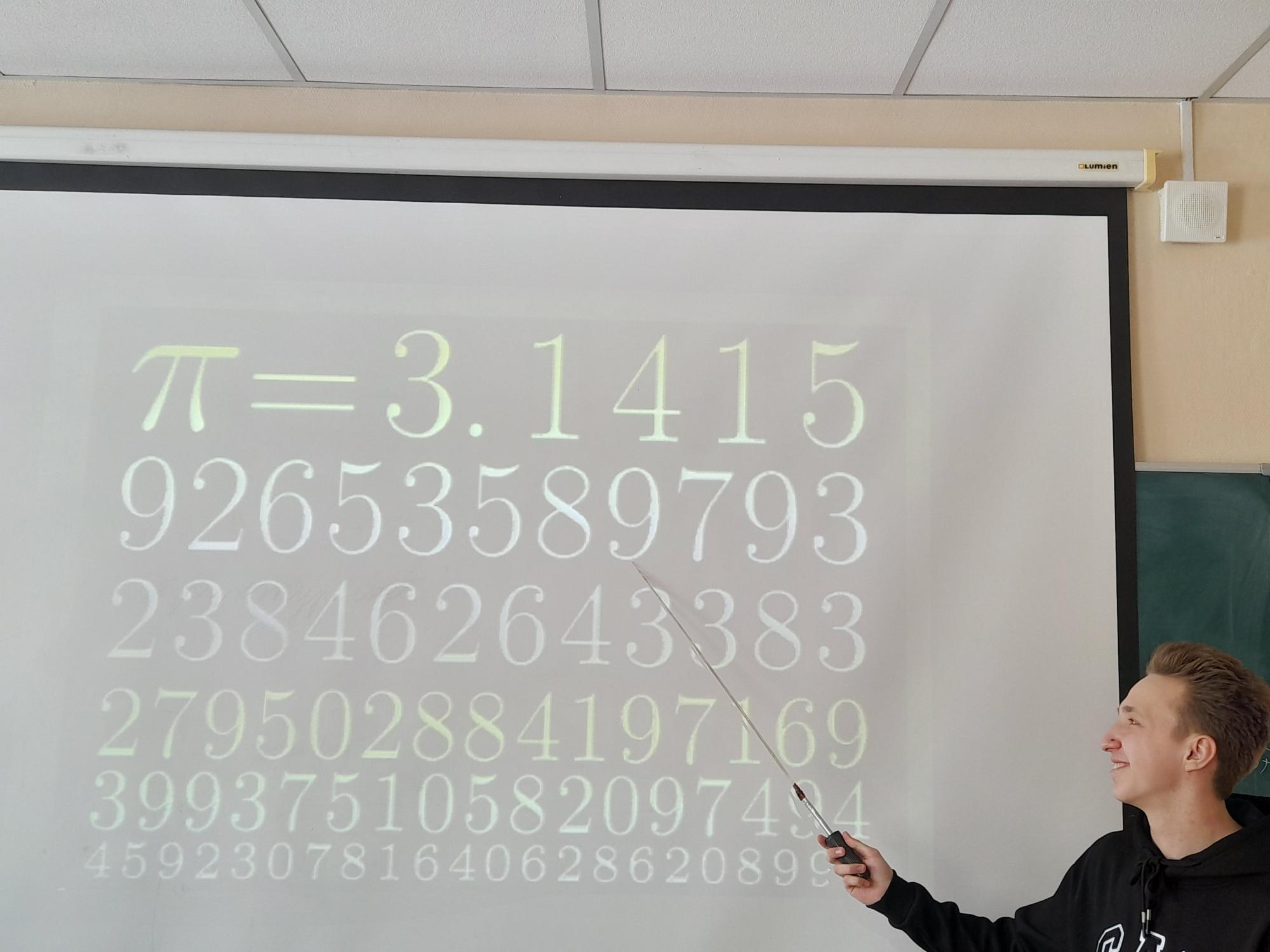 Студенты поделились известными фактами об этом числе, узнали новую интересную информацию. С 2013 года биоинформатик Мартин Крживинский с помощью открытого программного пакета для визуализации данных создаёт невероятные изображения числа π. В конце беседы был показан ролик «Визуализация и мелодия числа ПИ»