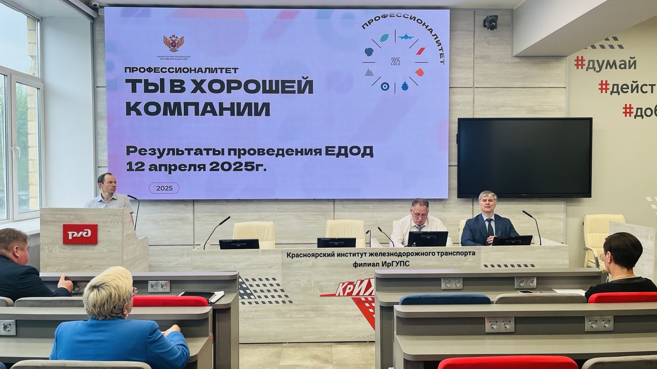 В ходе совещания главным докладчиком выступил ответственный за популяризацию федерального проекта "Профессионалитет" Максим Михайлов. В своём докладе он провел сравнительный анализ итогов проведения Единого дня открытых дверей в кластере "Железнодорожник Енисейской Сибири" в сравнении с другими образовательными учреждениями.