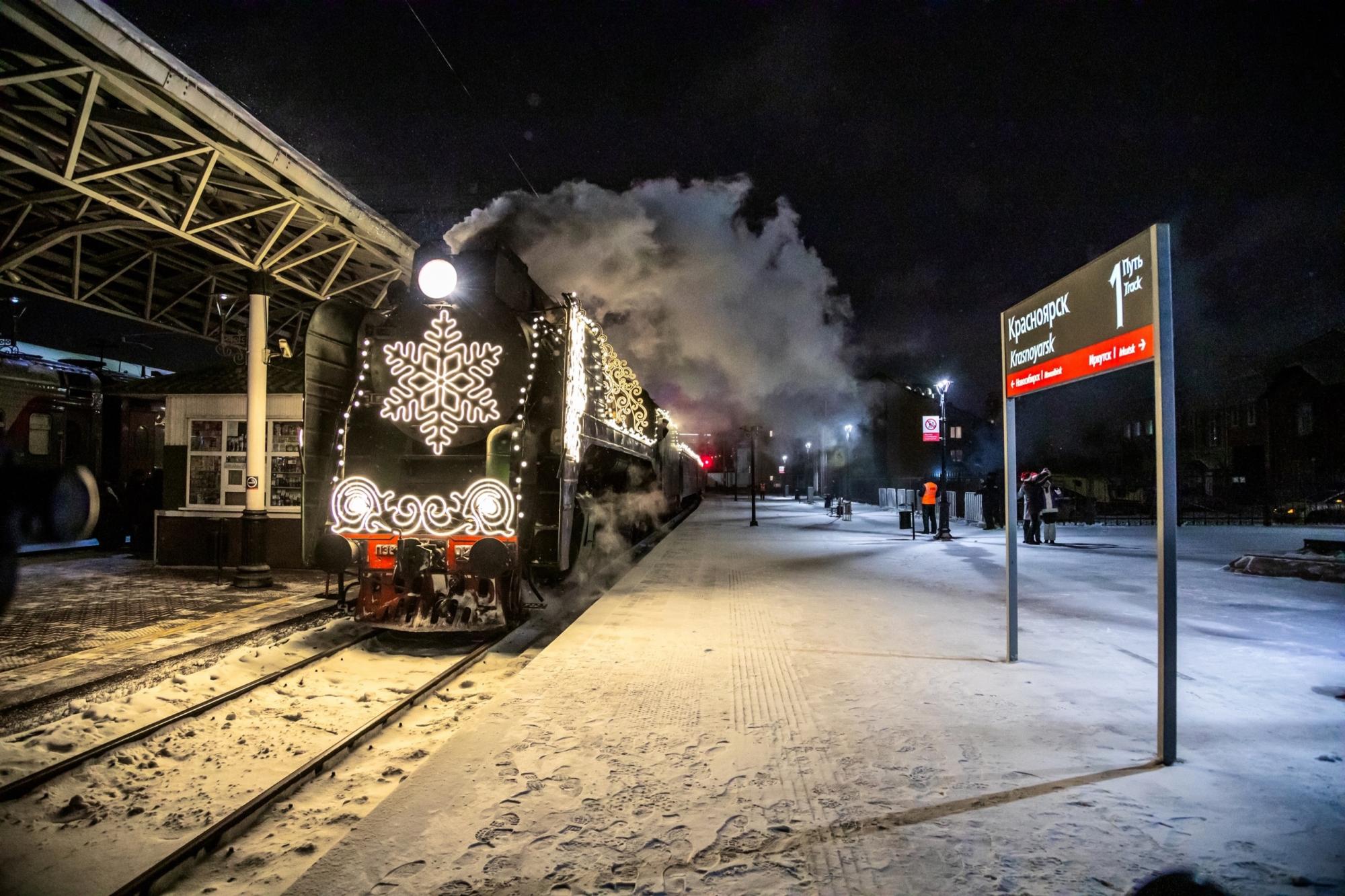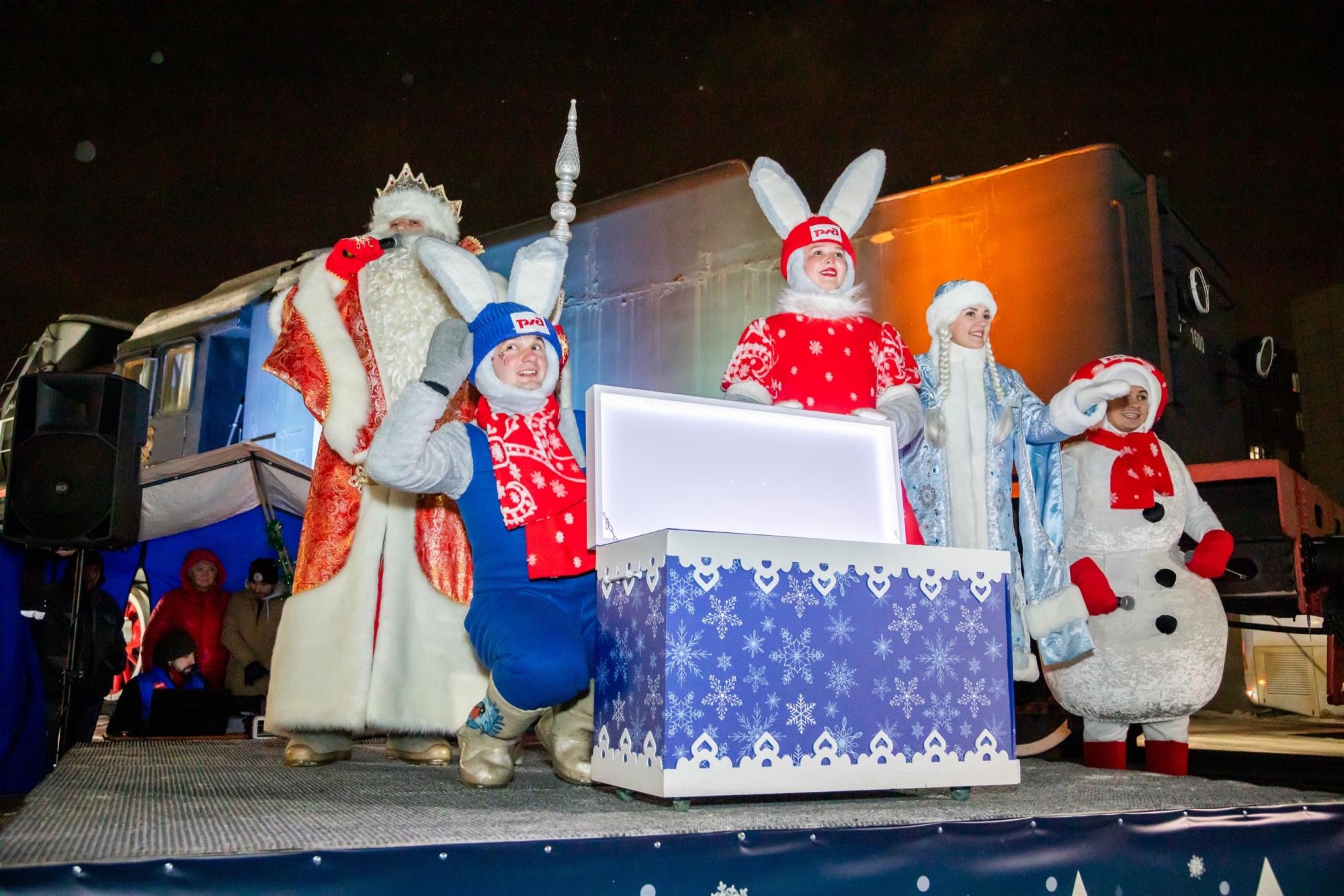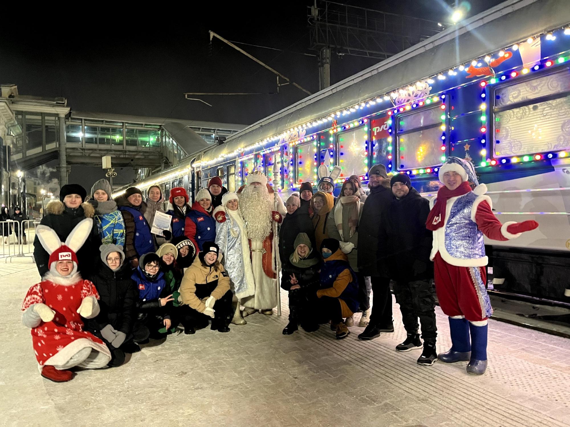Маршрут поезда проходит более чем через 70 городов. Везде, где делает остановку «Поезд Деда Мороза», посетителей вокзалов ждёт торжественная праздничная программа с участием артистов и аниматоров, которая позволит окунуться в атмосферу зимней сказки и волшебства.