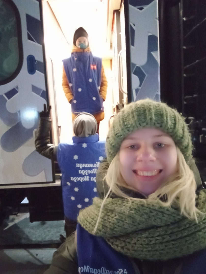 Волонтерской команде КрИЖТ «МЫ РЯДОМ!» удалось посмотреть на поезд и побывать в волшебной атмосфере весь период стоянки – 4,5 часа. Несмотря на трудности погоды, студентам очень понравилось помогать в организации данного мероприятия, все остались довольны!
