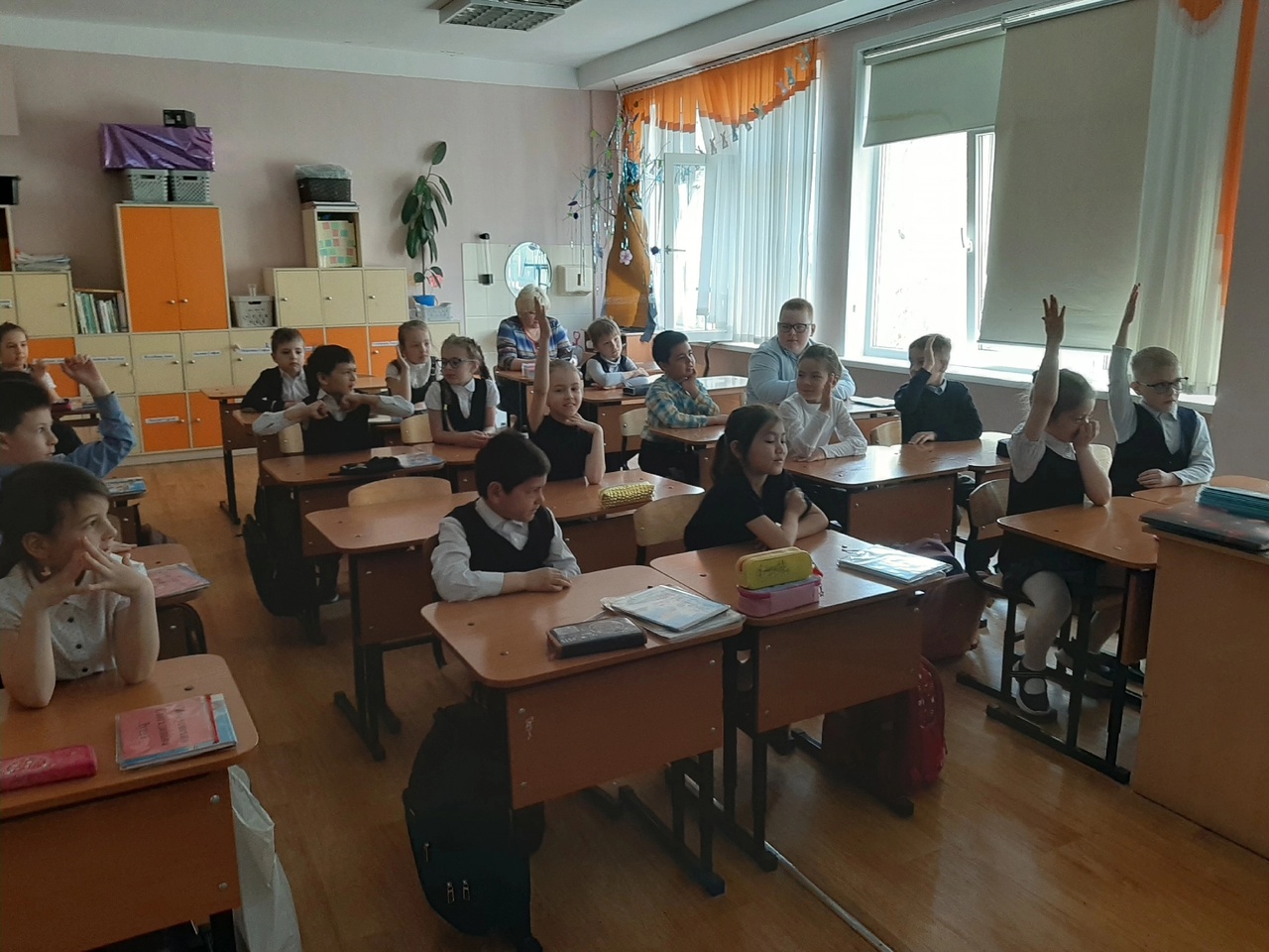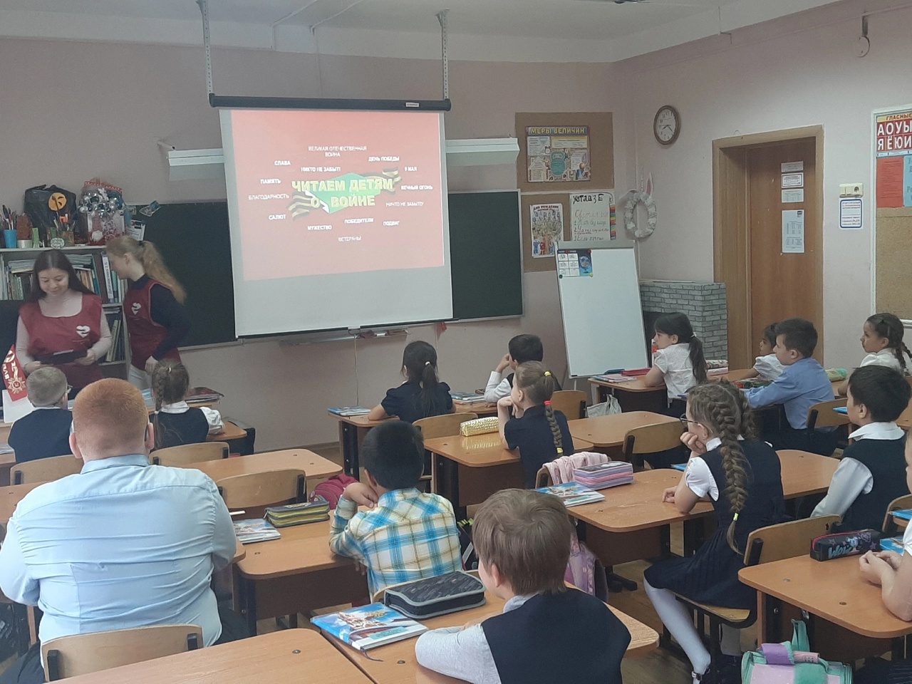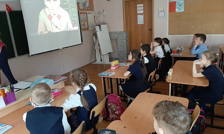Волонтеры посетили 1А класс школы №21. Помимо чтения рассказов, студенты показали учащимся познавательный мультфильм, провели викторину на знание ВОВ и нарисовали символ мира и добра – Белого голубя.