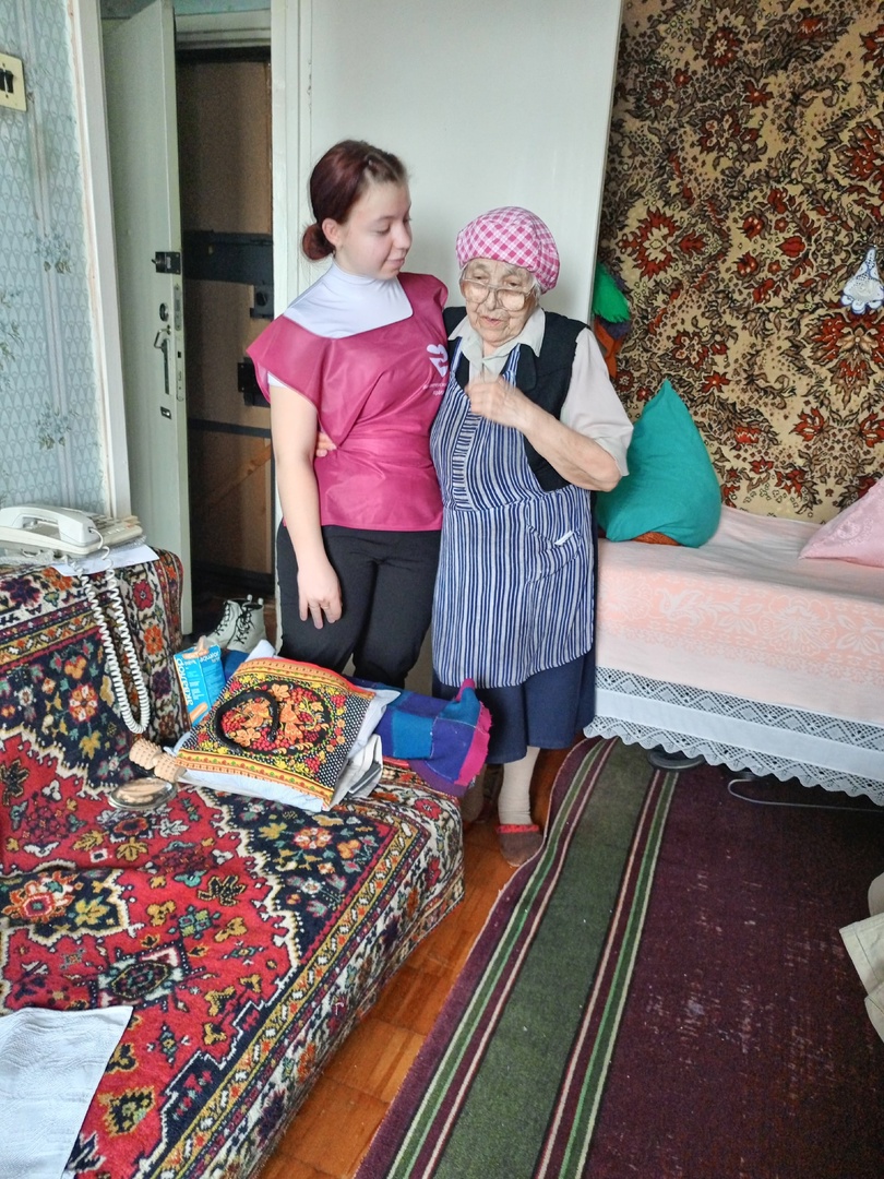 Студенты помогали детям войны, труженикам тыла - мыли окна, вешали шторы, мыли полы, а также радостно общались с бабушками и дедушками, которые с интересом рассказывали о подвигах своих родителей и родственников.