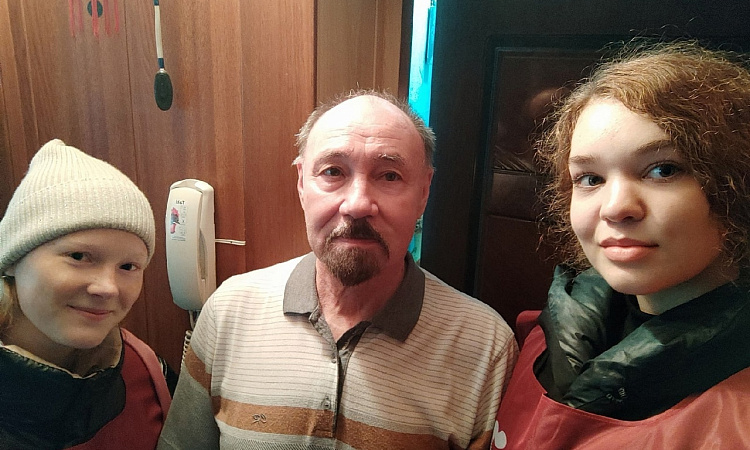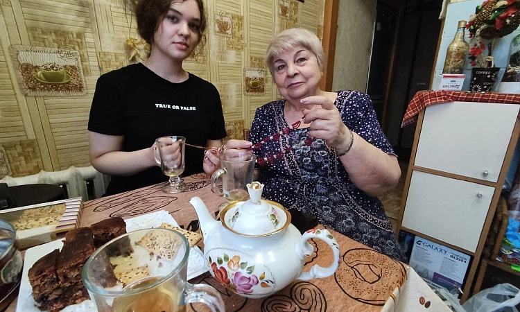 Ветераны поделились с ребятами веселыми историями со времен работы в Красноярском институте железнодорожного транспорта и напоили их чаем.