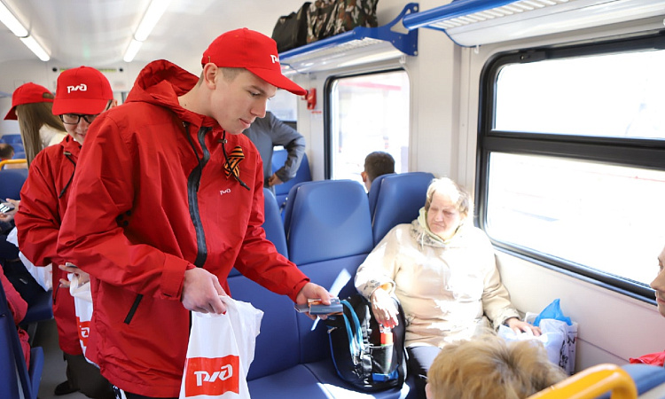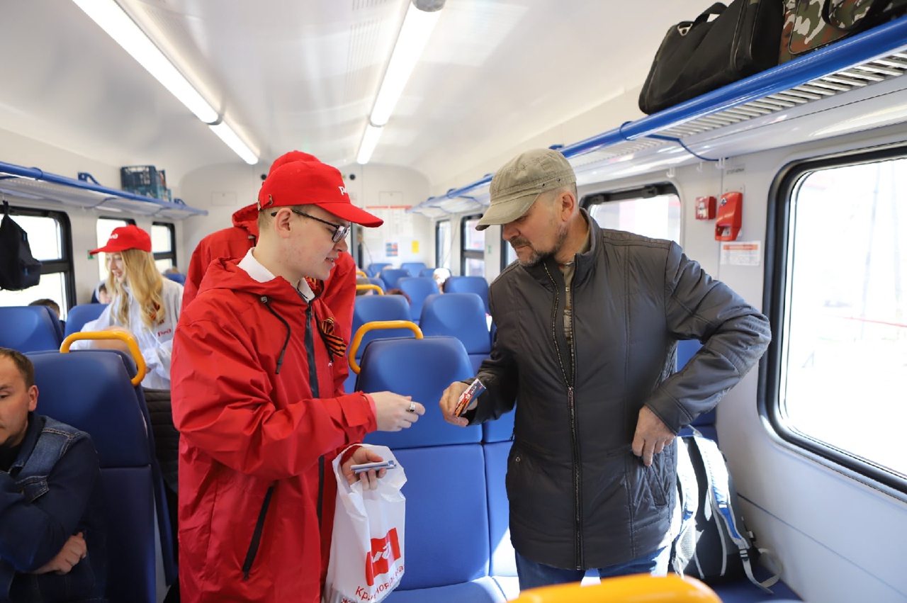 Под аккомпанемент народных инструментов артисты исполнили любимые многими поколениями песни военных лет и песни о войне из знаменитых кинофильмов. Волонтеры поздравили пассажиров с наступающим праздником Днем Победы, а также напомнили о правилах безопасного поведения на железной дороге.