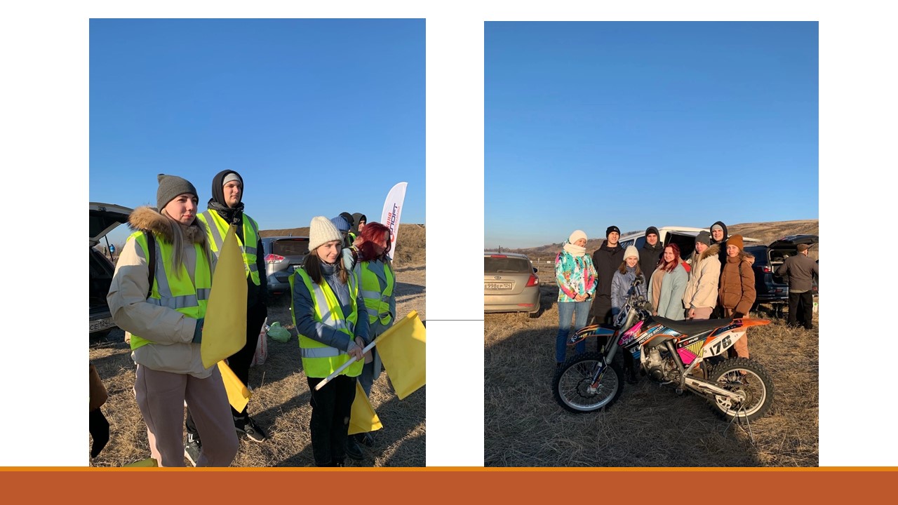 Мотокросс — вид спорта очень зрелищный и эмоциональный. Всем ребятам было очень интересно и ответственно участвовать в мероприятии такого формата. В обязанности волонтеров входило: подача сигнала флажком для прохождения участниками определенного отрезка трассы, а также отслеживание безопасной скорости и аккуратного преодоления трудных участков мотогонщиками.