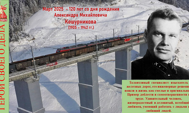 В год 80-летия Великой победы по всей России широко озвучиваются подвиги военных на фронтах и героизм тружеников тыла. Этим постом отдаем дань памяти Александру Михайловичу Кошурникову, человеку, оставившему яркий след в железнодорожном строительстве России. Он погиб как солдат при исполнении долга, когда в суровом военном 1942 году возглавил экспедицию по изысканию трассы Абакан-Тайшет.