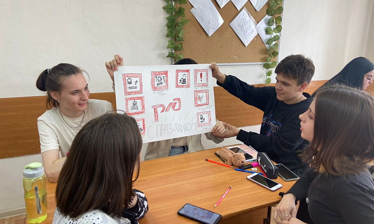 Команды студентов разрабатывали графически «Правила безопасности на железной дороге». Важно было, чтобы плакат получился привлекательным для всех пассажиров, не только для детей.