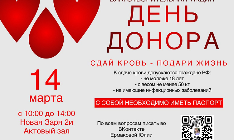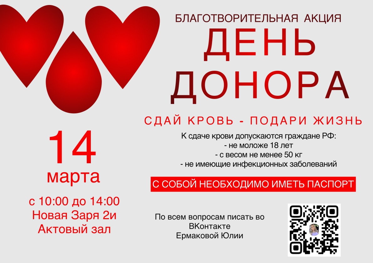 Донорство - уникальная возможность подарить кому-то жизнь, оно дает шанс помогать людям без вреда для своего здоровья. Каждый день переливание крови спасает сотни человеческих жизней. Давайте и мы, подарим кому-то жизнь, возможно именно в нашей крови сейчас кто-то нуждается!
