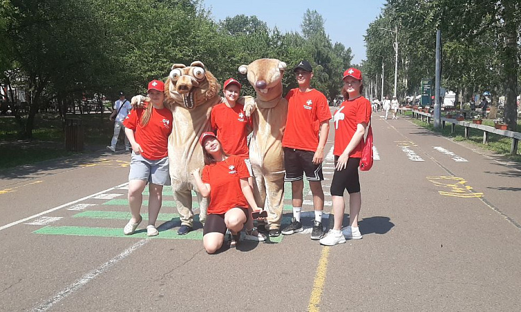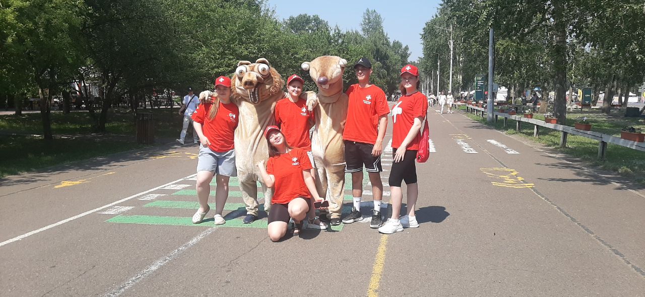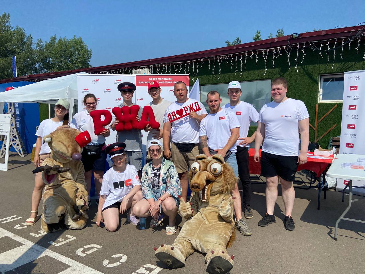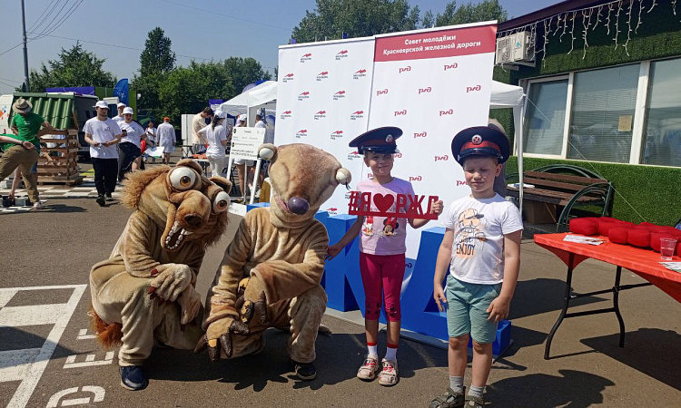 Они организовали профориентационную площадку, где рассказывали о своей образовательной организации, о работе на КрасЖД, а также развлекали детей, несмотря на жару +40 °С.