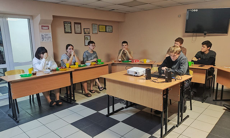 Юноши и девушки подготовили поздравления и юмористические сценки, загадывали загадки и весело рассказывали о буднях студентов. Чаепитие прошло в приятной и интересной атмосфере. В конце встречи участники посмотрели серию из сериала «Оливье и роботы» под названием «Процесс». Эта серия выполнена в стиле сюрреализма и рассказывает о том, как техника с искусственным интеллектом была приравнена к гражданам России. Им предоставили права на труд, отдых и даже забастовки, освободив от человеческого рабства.