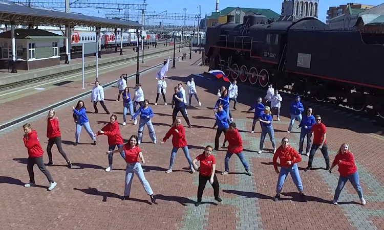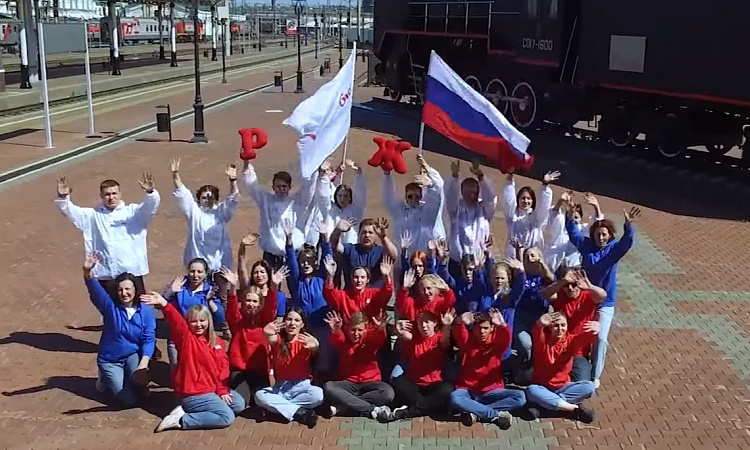 10 июня 2022 года волонтеры КрИЖТ совместно с молодежью КрасЖД провели флешмоб, посвященный Дню России.