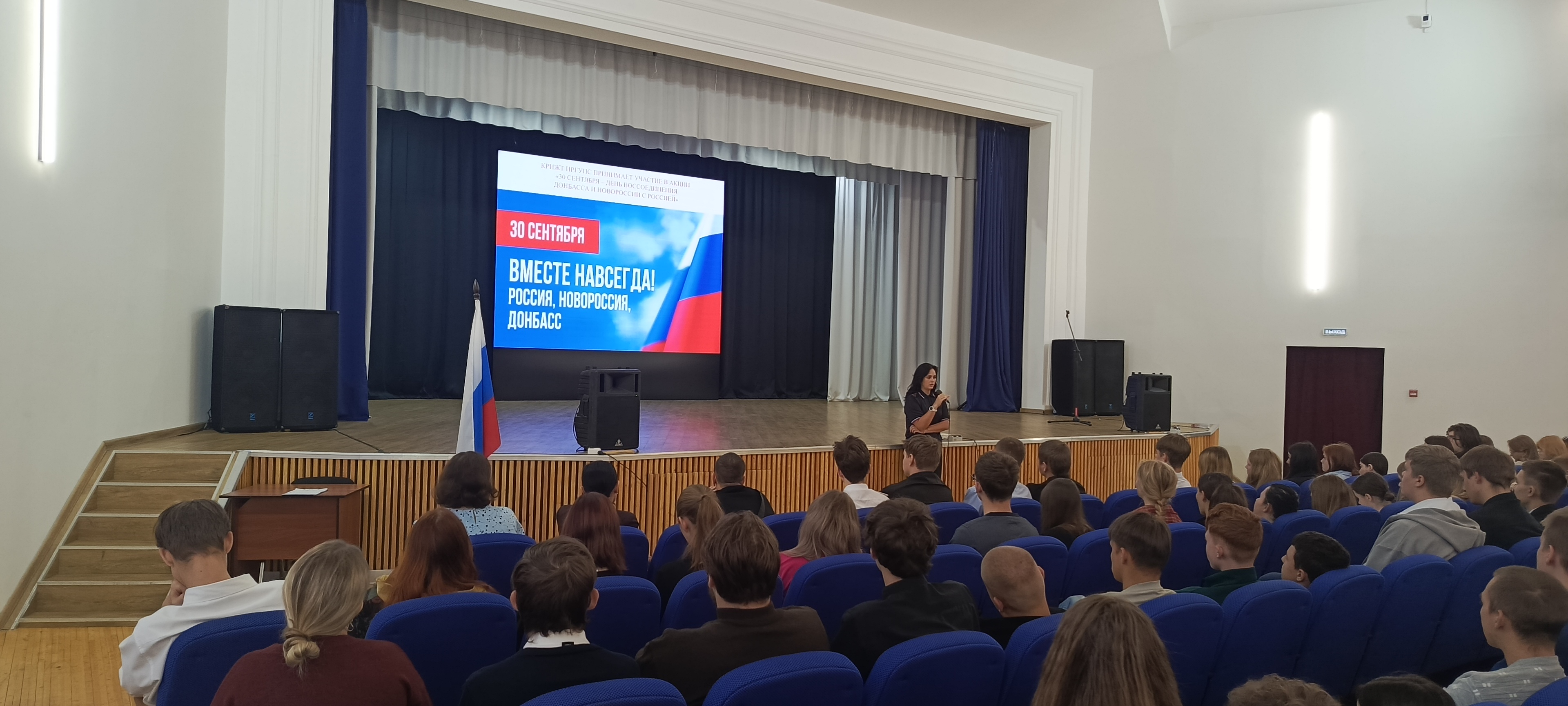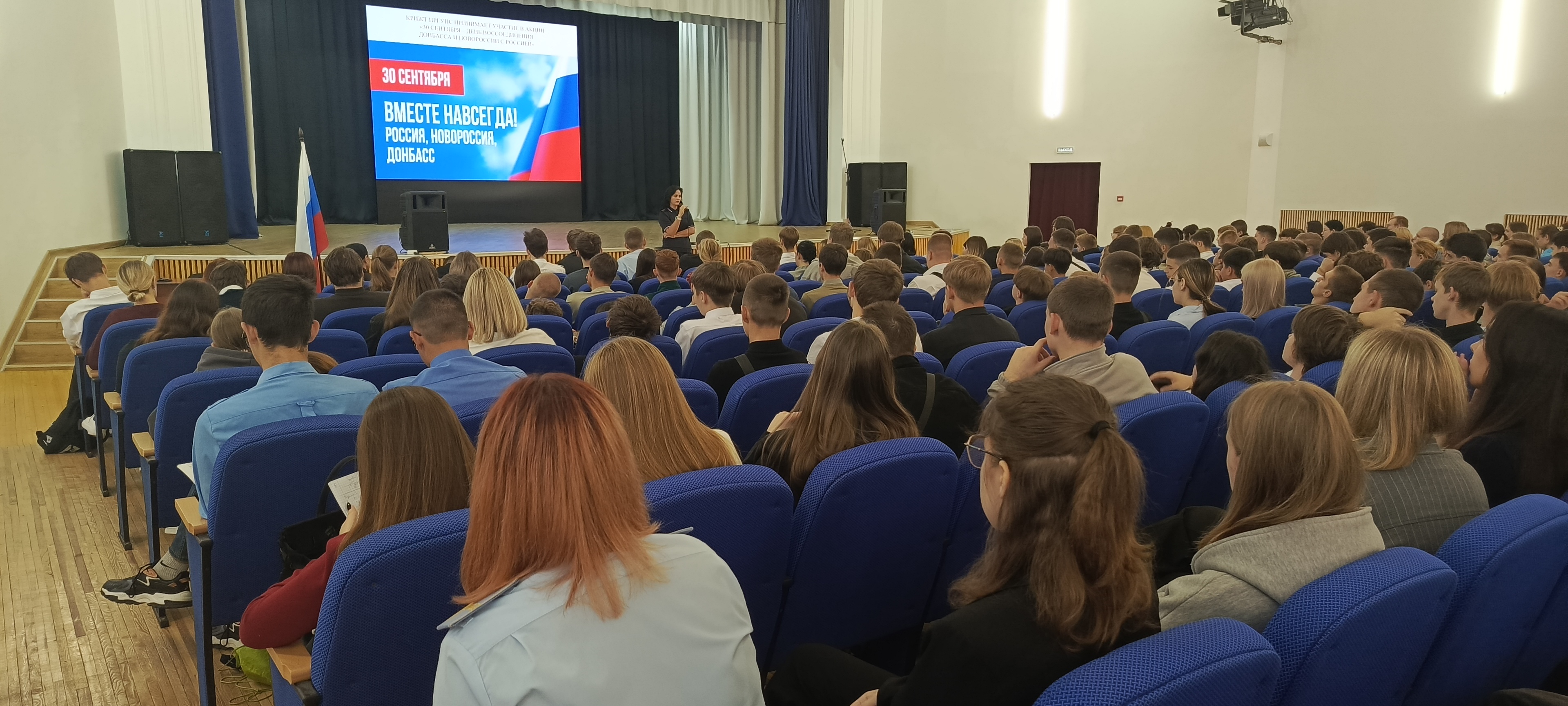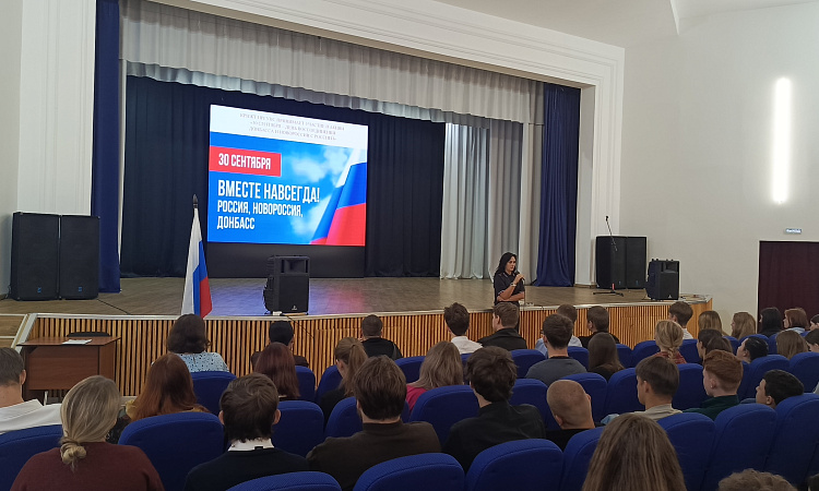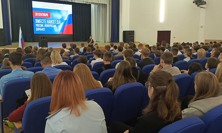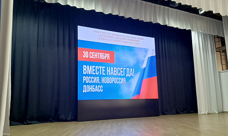В КрИЖТ ИрГУПС сегодня прошли тематические классные и кураторские часы о событиях 30 сентября 2022 года, когда был подписан договор о вхождении в состав Российской Федерации Донецкой Народной Республики, Луганской Народной Республики, Запорожской области и Херсонской области, и образовании новых субъектов Российской Федерации. Жители освобожденных регионов определили свой политический и гражданский статус, проголосовав за вхождения в состав нашей страны. Был показан фильм о побратимом городе Красноярску - Свердловске студенты узнали как живут люди в Луганской народной республике.