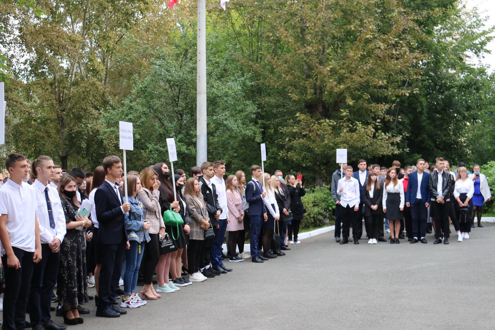 Нарядные первокурсники с радостью готовы вступить в новую студенческую жизнь. Звучит музыка, и группы строятся на торжественную линейку.