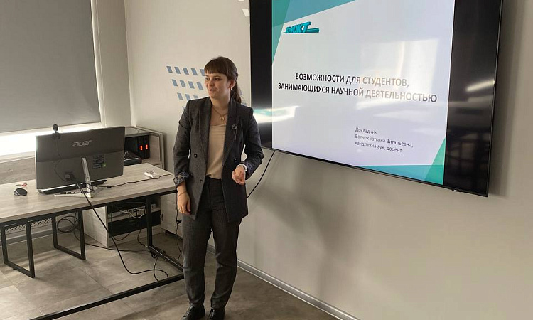 23 мая 2024 года В Красноярском институте железнодорожного транспорта кандидат технических наук, доцент Волчек Татьяна Витальевна провела лекцию для студентов кафедры «Эксплуатация железных дорог» на тему "Возможности в России для студентов, занимающихся научной деятельностью".