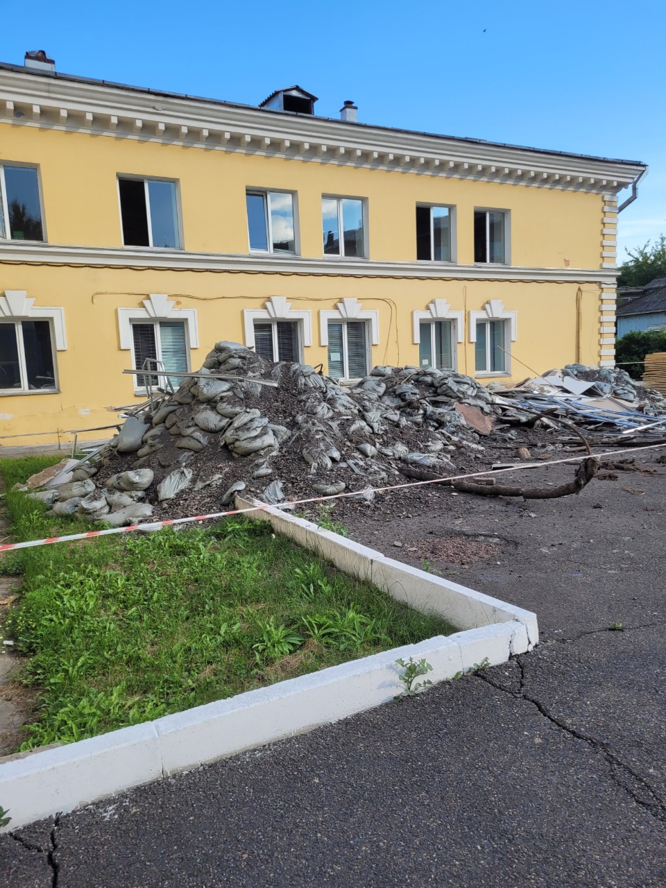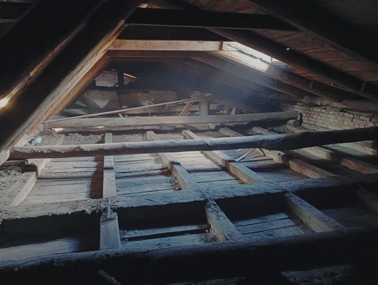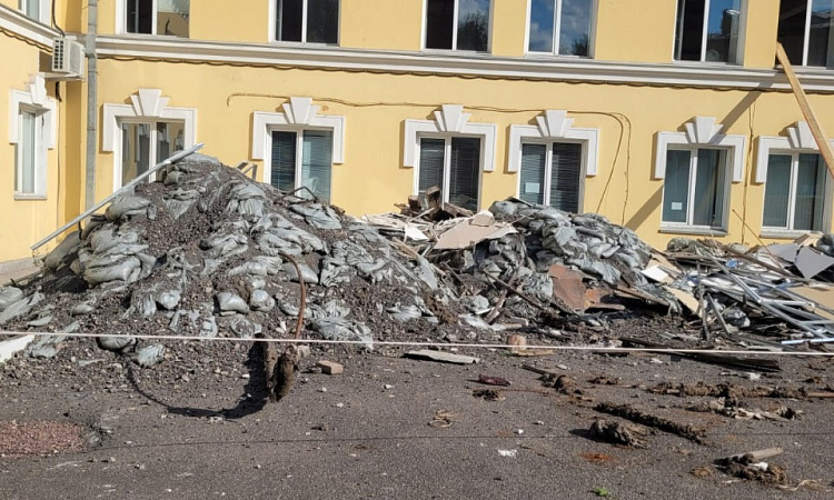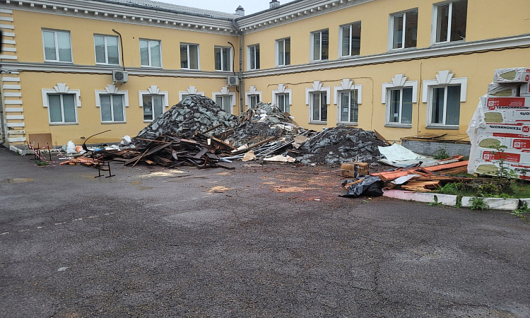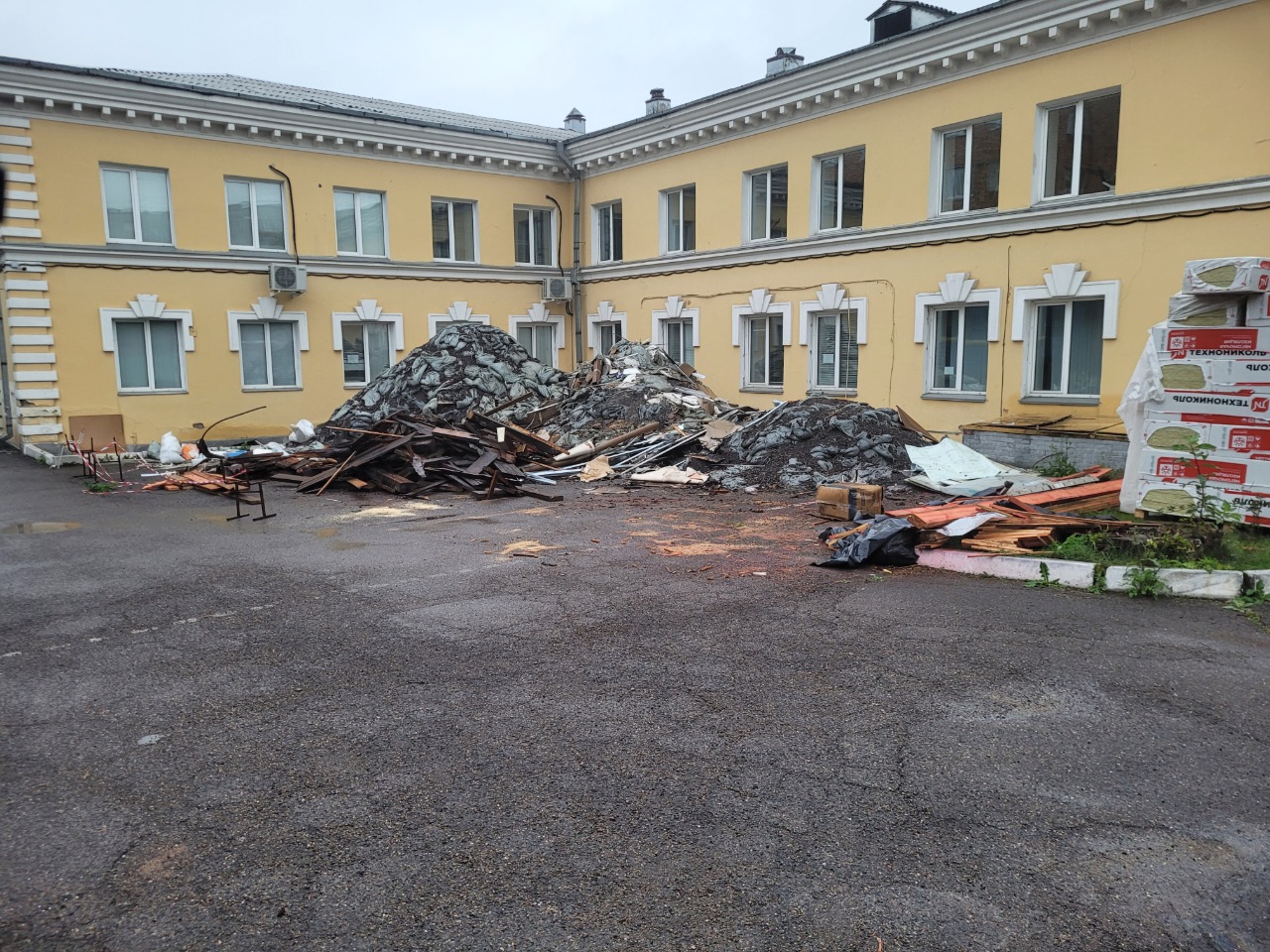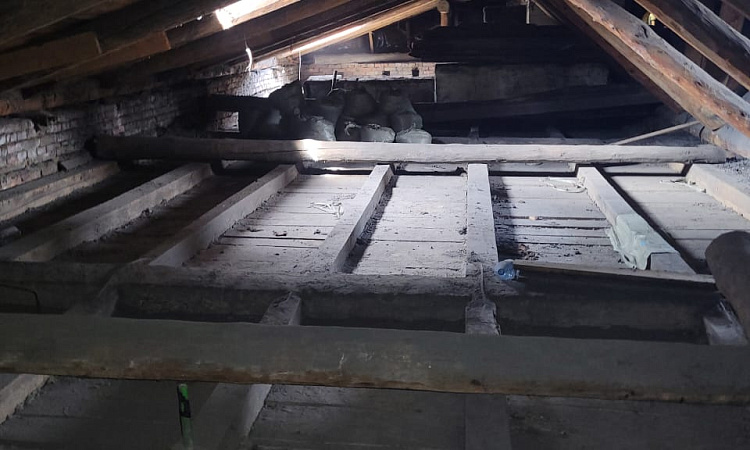 В летний период 2025 года работы по реконструкции кровли продолжились, нося, на первый взгляд, незаметный характер. Однако, по своему содержанию они являются крайне важными для долгосрочной эксплуатации здания. В рамках реконструкции проведены масштабные работы по освобождению чердачных перекрытий от многолетнего слоя грунта, демонтированы устаревшие металлоконструкции и ветхие доски.