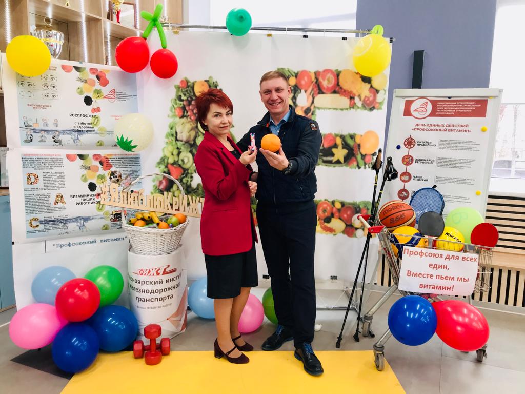29 марта 2023 года в КрИЖТ ИрГУПС в рамках проведения Единого дня действий, направленных на популяризацию Профсоюза, оздоровление работников и профилактику сезонных заболеваний, членами профкома ППО КрИЖТ ИрГУПС организована и проведена акция Единый день действий «Профсоюзный витамин».