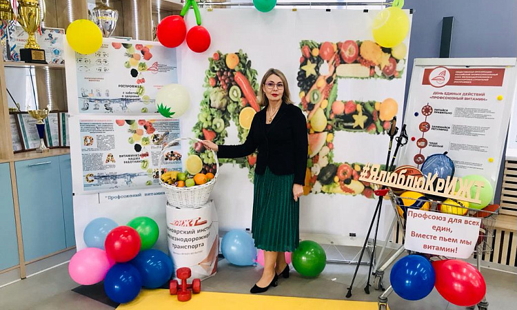 Члены профкома ППО КрИЖТ ИрГУПС оформили фотозону, где все желающие смогли сделать фото и ознакомиться с информацией о проводимой акции Единый день действий «Профсоюзный витамин».
