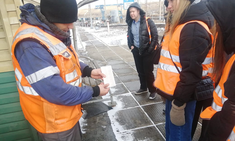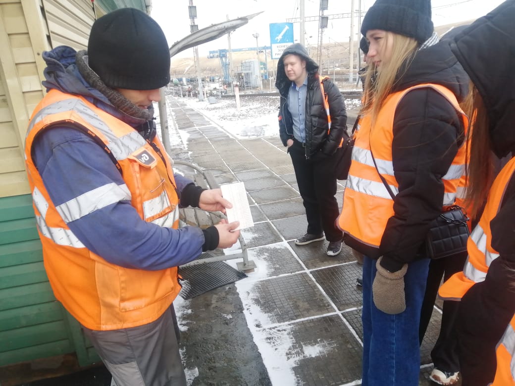 26 марта студенты Красноярского техникума железнодорожного транспорта специальности «Организация перевозок и управление на транспорте» под руководством преподавателя Екатерины Мериловой посетили сортировочный парк на железнодорожной станции Красноярск-Восточный. Студентов встретил и рассказал о работе станции и.о. главного инженера станции Денис Берг.