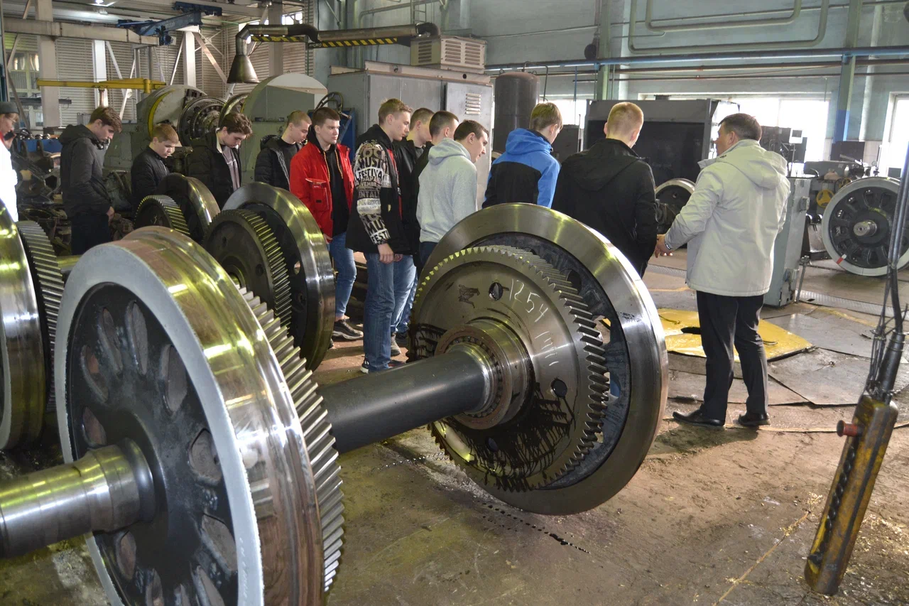 Далее, группы посетили вагонно-колесные мастерские, где им был наглядно продемонстрирован ремонт колесной пары грузового вагона со сменой элементов. Специалисты показали процесс спрессовки изношенных центров колесной пары с оси и процесс формирования новой колесной пары с подбором новых центров по натягу к оси колесной пары с последующей напрессовкой.