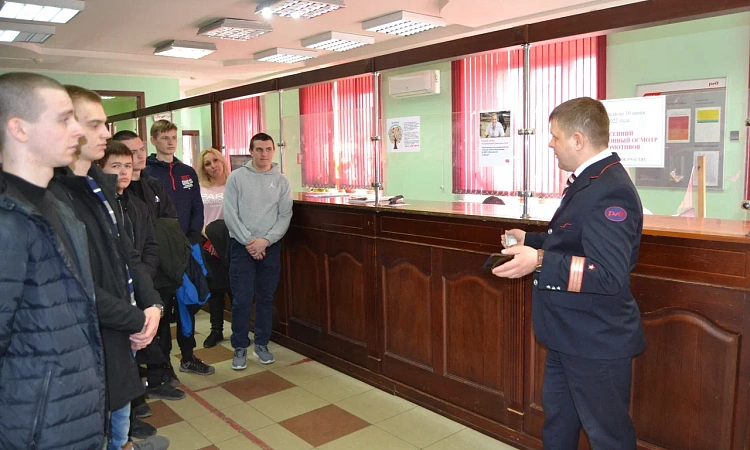 Начальник депо ТЧЭ-3 Иланская Лысак Николай Николаевич ознакомил студентов с историей развития предприятия, его традициями. Ознакомил с организацией работы оперативного персонала в цехе эксплуатации. Особое внимание уделил порядку формирования локомотивных бригад, явки на работу, прохождению предрейсового медицинского осмотра и инструктажа по безопасности движения поездов.
