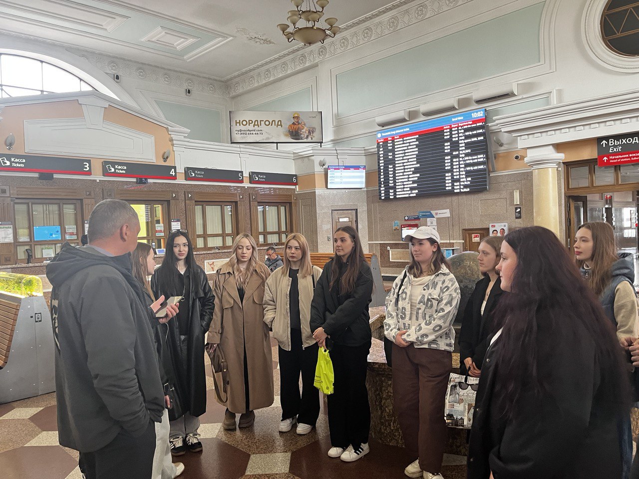 Студенты узнали о важнейших фактах из истории здания, его реконструкции, прошли по основным залам вокзала, ознакомились с архитектурными особенностями и функциями разных отделов, с системой диспетчеризации и узнали, как обеспечивается безопасность на железной дороге. В конце экскурсии студенты задали множество вопросов, на которые сотрудник вокзала с радостью ответил.