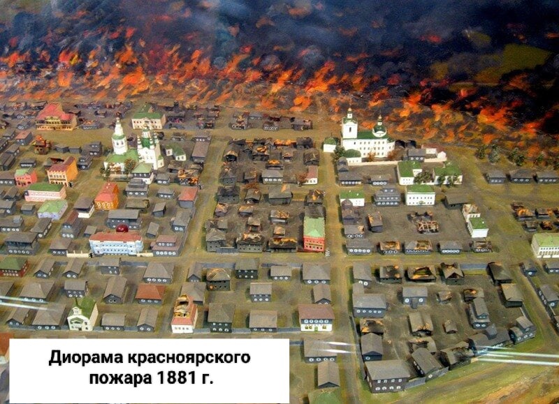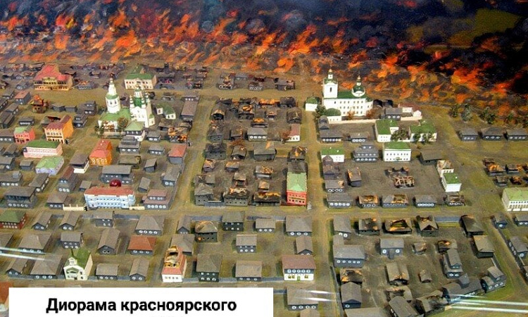 В музее собрано много интересного материала, в первую очередь сохранилось упоминание о трех опустошительных пожарах, которые пережил старый деревянный город в течение трех веков. Есть макет города, на котором можно посмотреть, как начинался и распространялся один из самых разрушительных пожаров Красноярска в 1881 году.