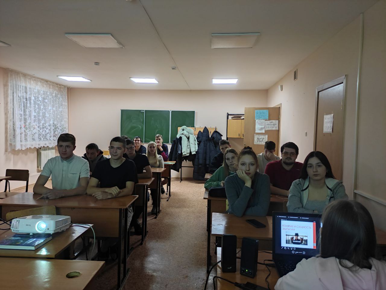18 ноября в общежитии №1 КрИЖТ ИрГУПС Валерия Аргунова (группа Д.9-24-3), Алиса Малушкова (группа Д.9-24-1) и Оксана Бибикова (Д.9-24-1) провели мероприятие об эмпатии. Ребята узнали, почему эмпатия важна в жизни человека и как она проявляется. Узнали различия между эмпатией и сочувствием, уровни проявления и формы. Повторили техники эмпатического слушания, а также вспомнили приёмы и техники наблюдения. Поговорили и об ошибочном применении эмпатии, то есть об «эмпатической слепоте», которая проявляется в неконтролируемой и манипулятивной эмпатии, когда индивид сам избегает этих чувств.