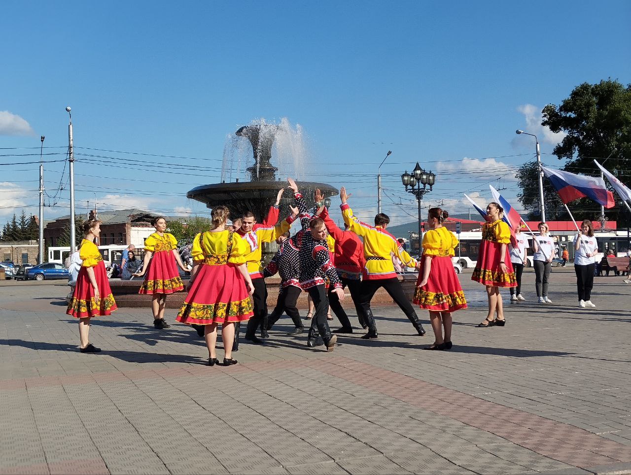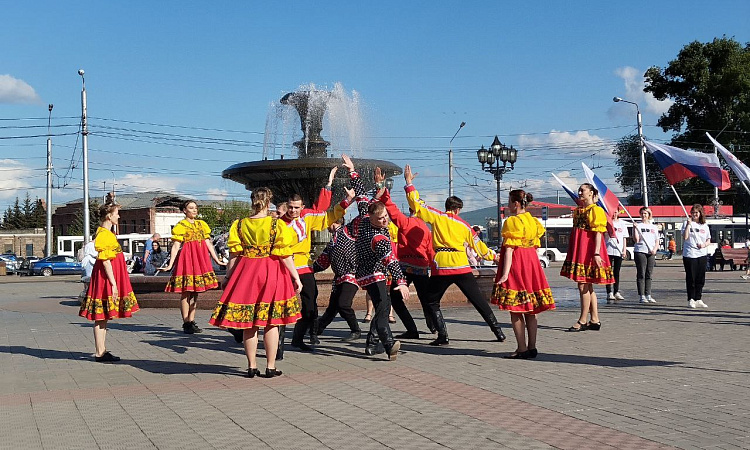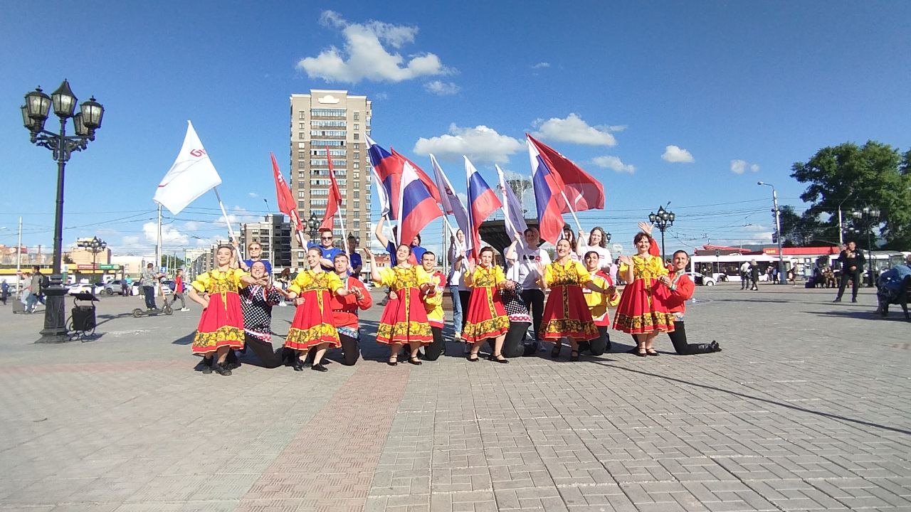 11 июня 2024 года студенты КрИЖТ ИрГУПС совместно с сотрудниками и ветеранами КрасЖД приняли участие во флешмобе, посвященном Дню России.