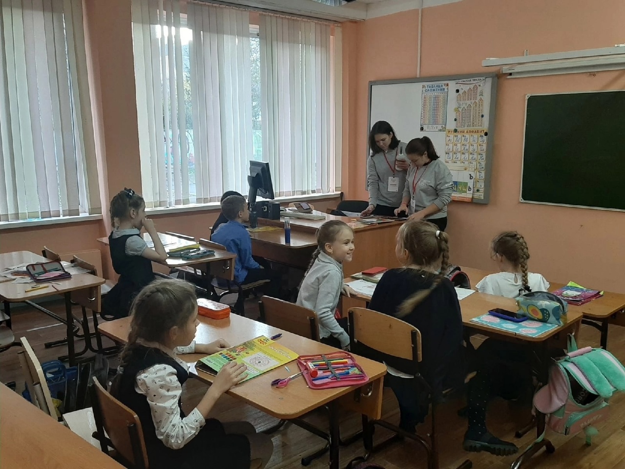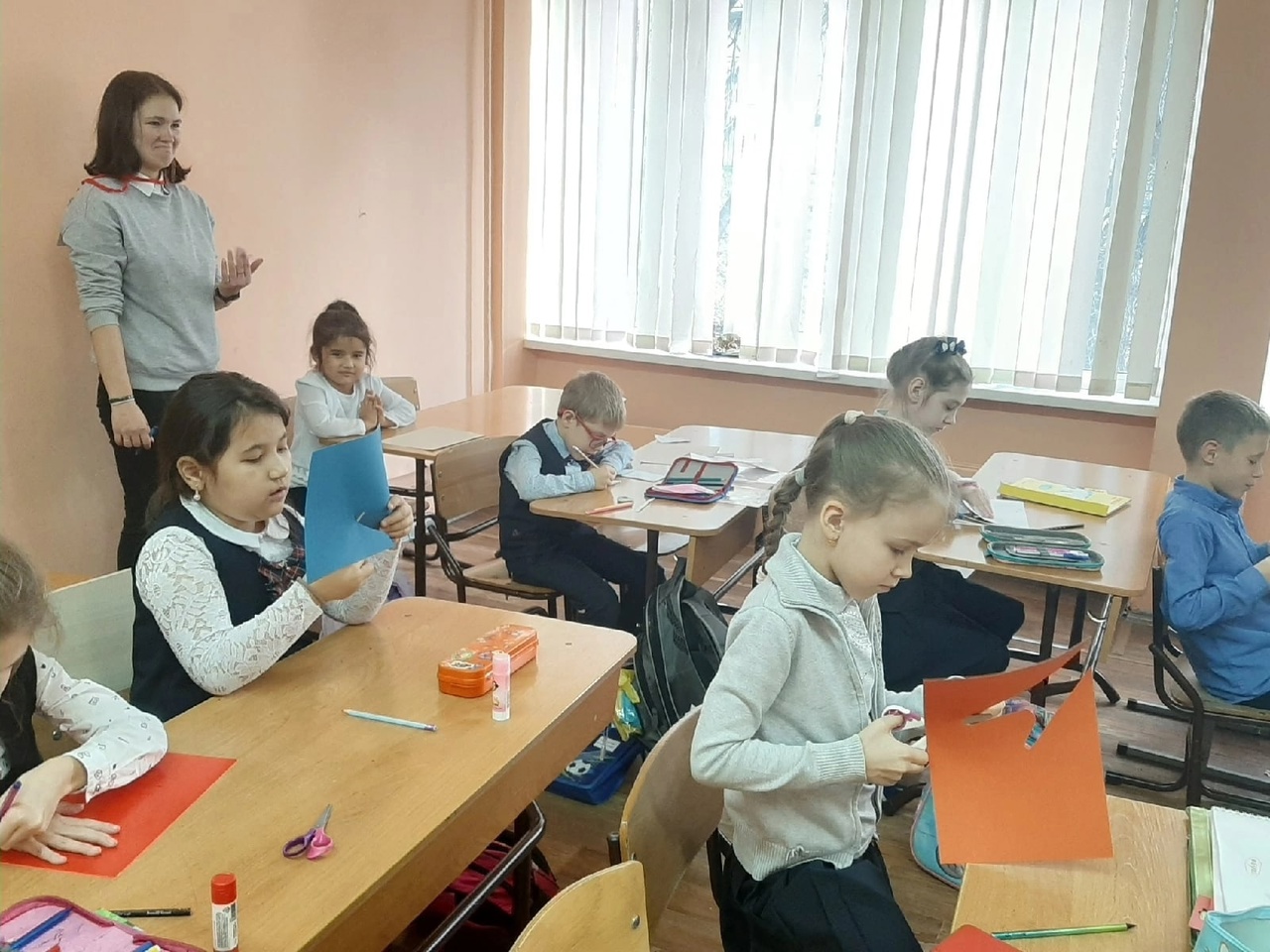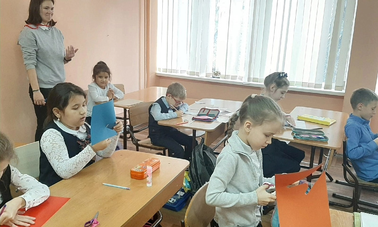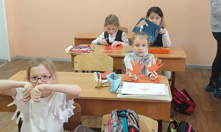 Учащиеся не только сделали открытки, но и весело провели время со студентами, танцуя под веселые песни и играя в различные игры.