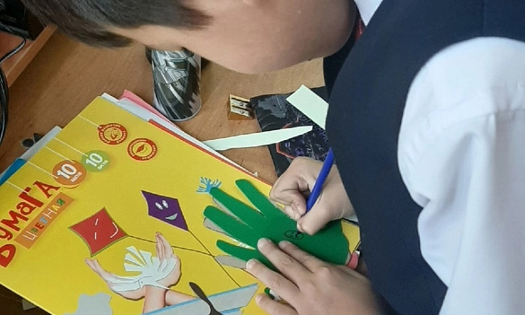 Ученики с большим удовольствием делали открытки своим папам, а у кого нет отца, тем волонтеры предложили сделать подарок любому представителю мужского пола в семье: брату, дяде, дедушке.
