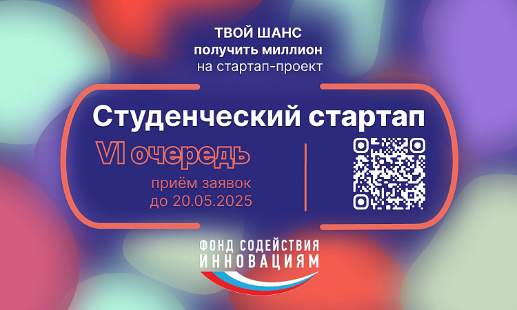 Фонд содействия инновациям запустил VI очередь всероссийского конкурса «Студенческий стартап»! 🎉 Это твой шанс получить 1 000 000 ₽ на развитие проекта и 12 месяцев работы над его реализацией!