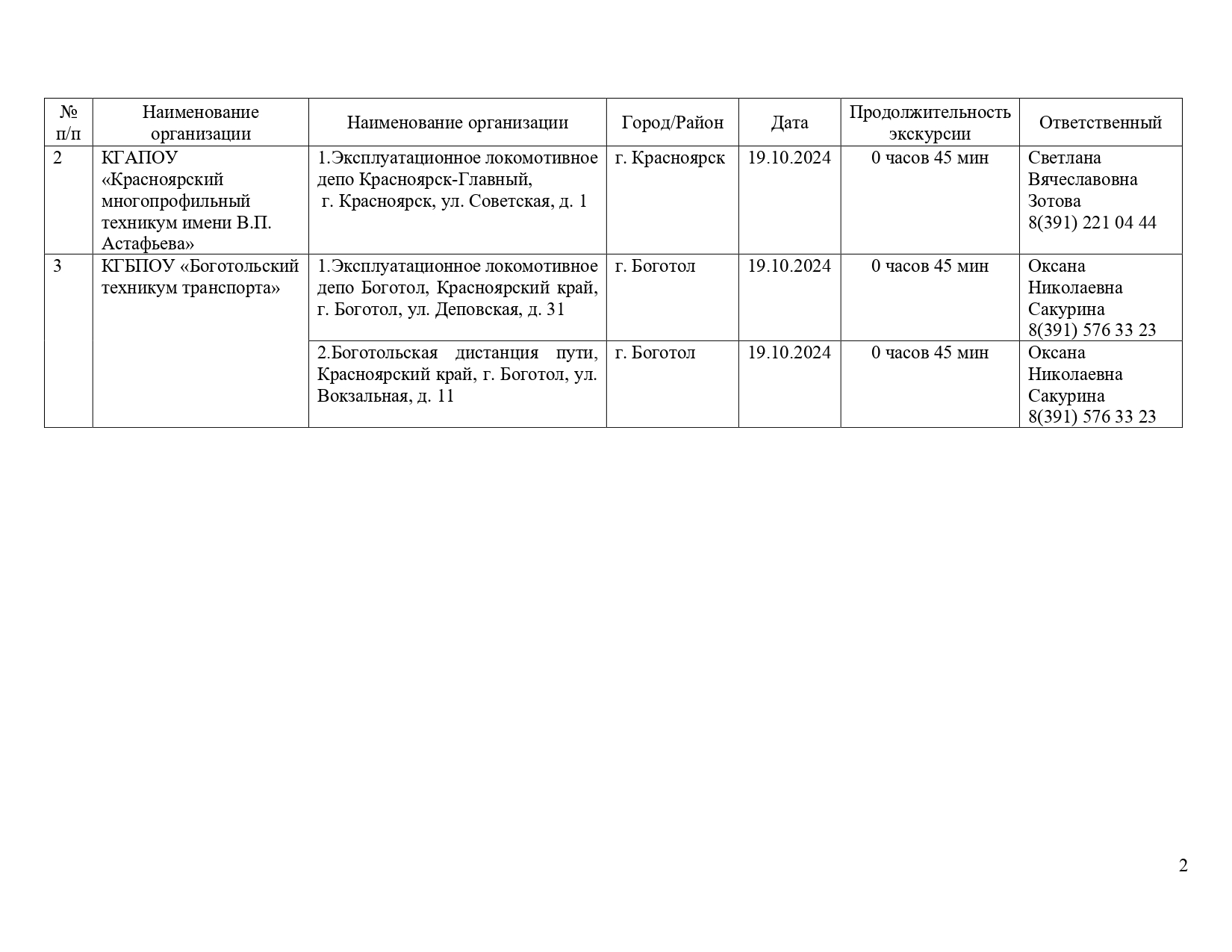 График посещения предприятий по кластеру "Железнодорожник Енисейской Сибири"