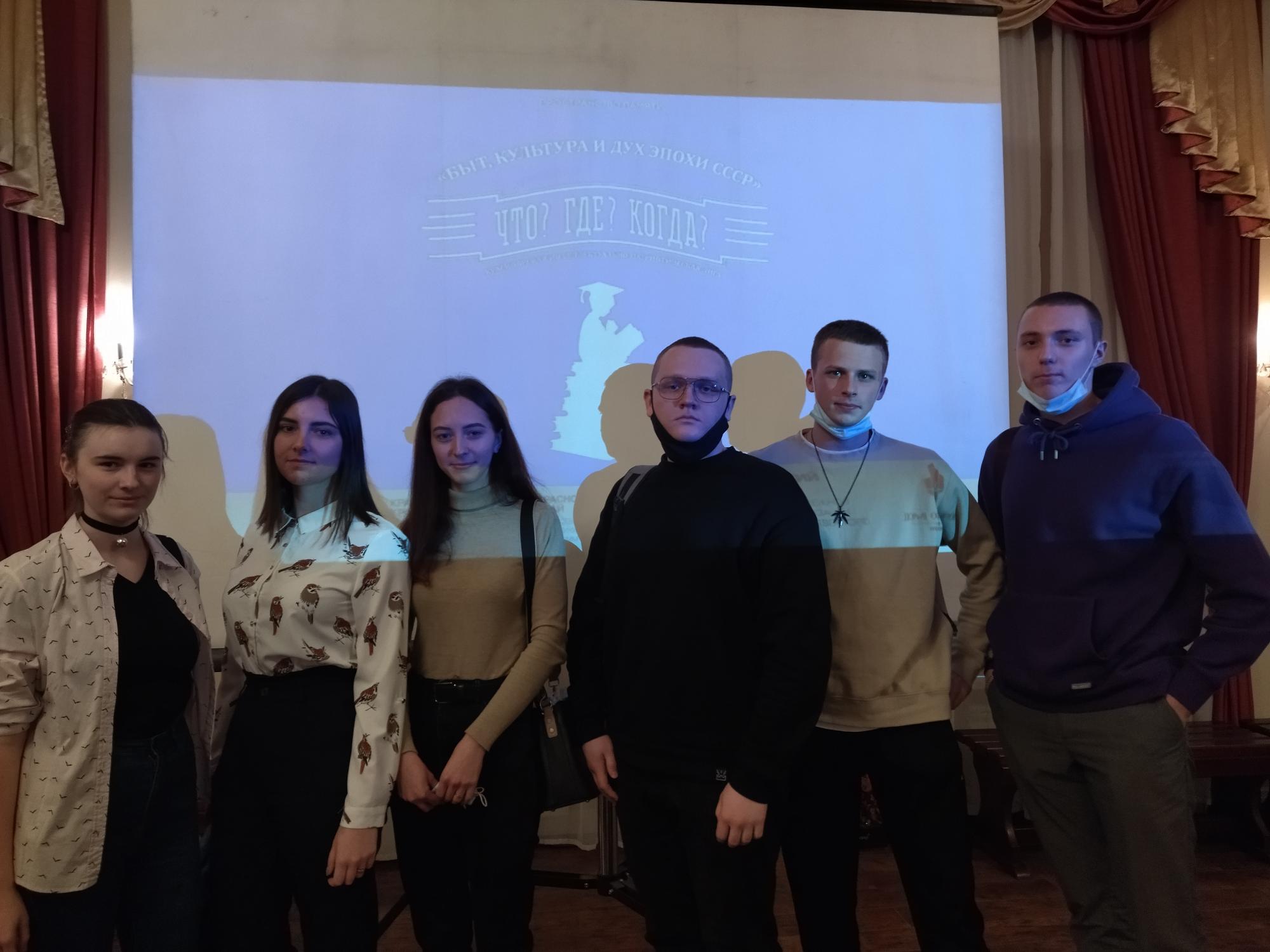 Наша команда играла в четверть финале, где студенты состязались в знаниях о "Быте, культуре и духе эпохи СССР", именно так звучала тема битвы.