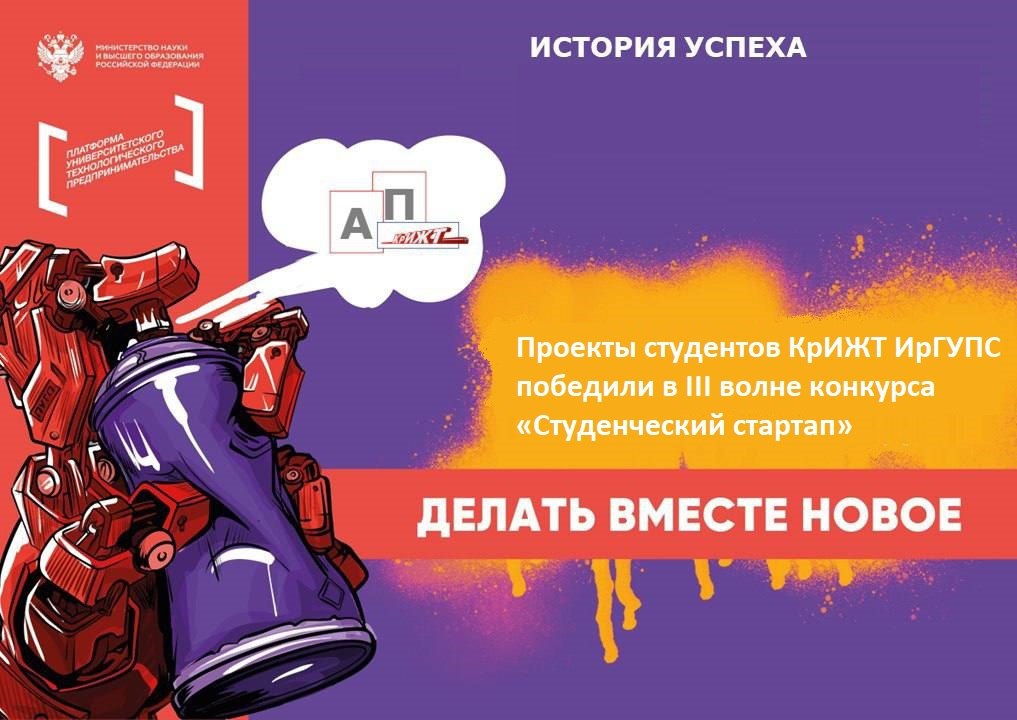 Выпускники Акселерационной программы КрИЖТ 2022 успешно представили свои проекты в федеральном конкурсе «Студенческий стартап». По решению экспертов гранты в размере 1 млн рублей получат 4 проекта молодых технопредпринимателей КрИЖТ. Разработки, которые будут профинансированы, касаются трех тематических направлений: «Новые приборы и интеллектуальные производственные технологии», «Цифровые технологии», «Биотехнологии». Поздравляем ребят в привлечении инвестиций на развитие своих проектов!