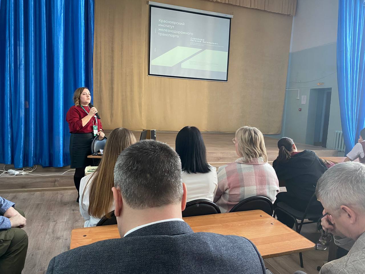13 февраля прошла совместная профориентационная встреча с учащимися МБОУ Гимназия №2 г. Заозерный, на которой старший преподаватель кафедры "Эксплуатация железных дорог" Валентина Пискунова и руководители компании СУЭК рассказали ребятам о социальных поддержках и гарантиях будущих специалистов, возможности работы и карьерного роста.