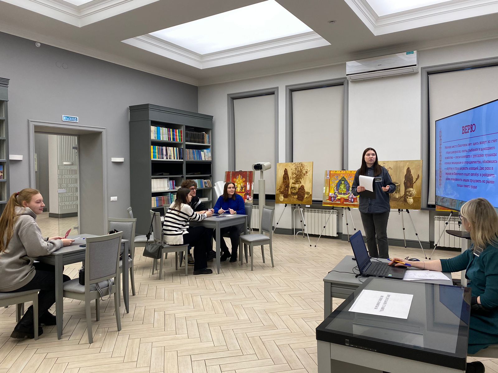 Участники отвечали на вопросы квиза, угадывали традиционные костюмы, по мелодии определяли национальный инструмент и отмечали на карте места проживания коренных народов края.