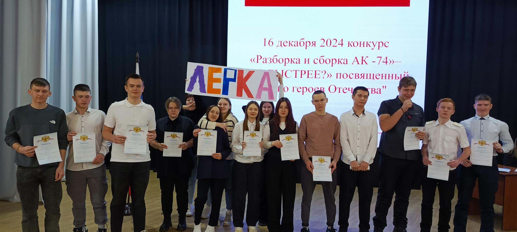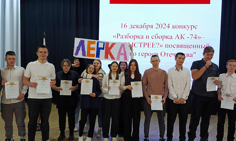 В актовом зале КрИЖТ ИрГУПС 16 декабря прошел конкурс «Разборка и сборка АК -74», посвященный "Дню Героев Отечества" среди студентов 1 и 2 курсов. Каждый участник выполнял неполную разборку оружия и затем сборку автомата.