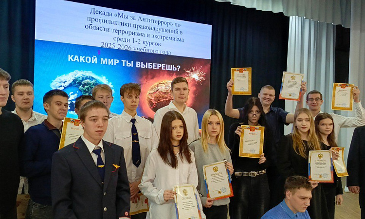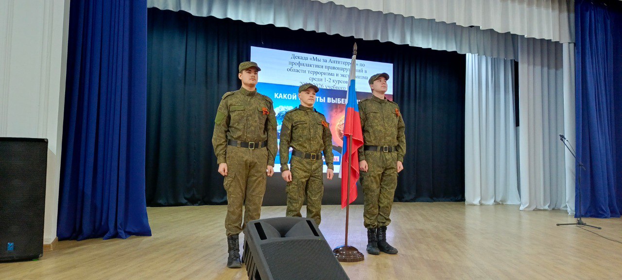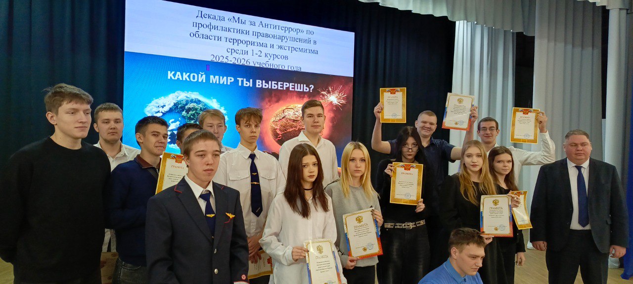 2. С 20.01.2026 по 23.01.2026 прошла викторина среди студентов 1-2 курсов по антитеррористической безопасности. Результаты викторины: первое место заняла группа ЭПСл 9-25-1, второе место – группа ЭПСл 9-25-5, третье место – группа С 9-25-3, руководитель – преподаватель-организатор ОБЗР Фомичев Ю.Г.