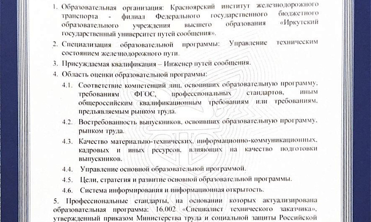 КрИЖТ ИрГУПС прошел профессионально-общественную аккредитацию