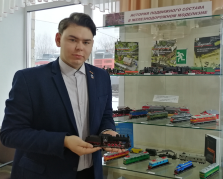 В холле главного корпуса развернута экспозиция моделей железнодорожного подвижного состава. Студент группы ЭПСл.11-22-5 Дмитрий Оружило представил свою коллекцию на всеобщее обозрение. Студенты электромеханического отделения, возглавляемые преподавателем С.В. Домниным, используют экспозицию для расширения знаний по истории своей специальности. Дмитрий поделился с одногруппниками историей любви к железнодорожному моделизму, рассказал об особенных экспонатах своей коллекции. Подробный рассказ Дмитрия опубликован в газете «Красноярский железнодорожник», прочесть его можно в читальном зале библиотеки КрИЖТ или по ссылке https://www.gudok.ru/zdr/176/?ID=1651752&archive=66214