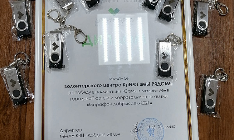 В конце октября были подведены итоги и торжественное награждение всех участников акции «Марафон добрых дел». Волонтеры КрИЖТ победили в номинации «Самые медийные».